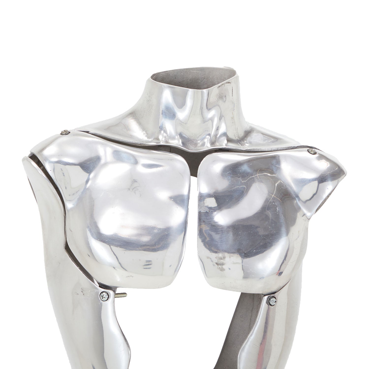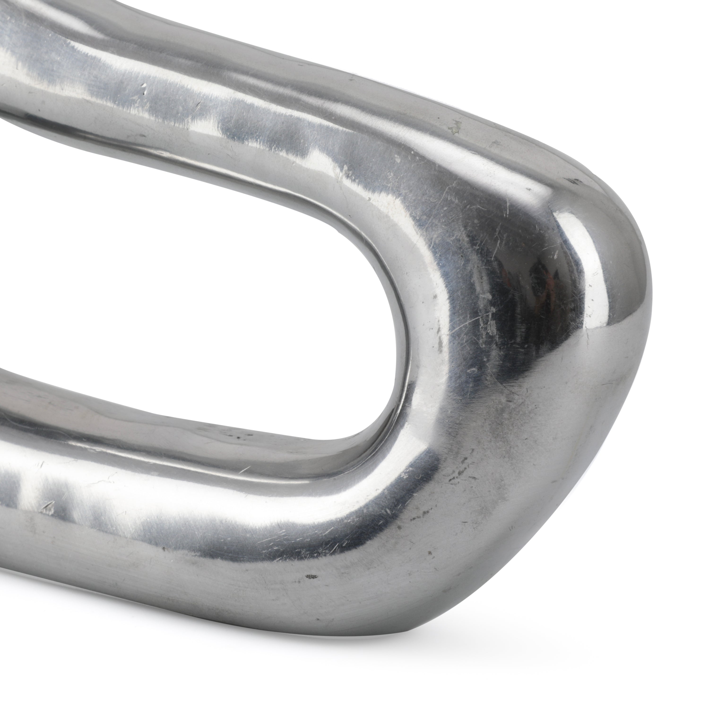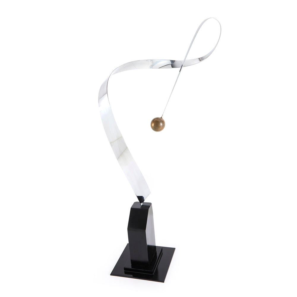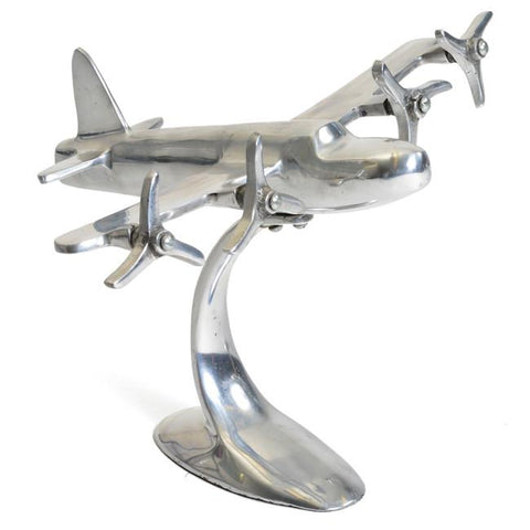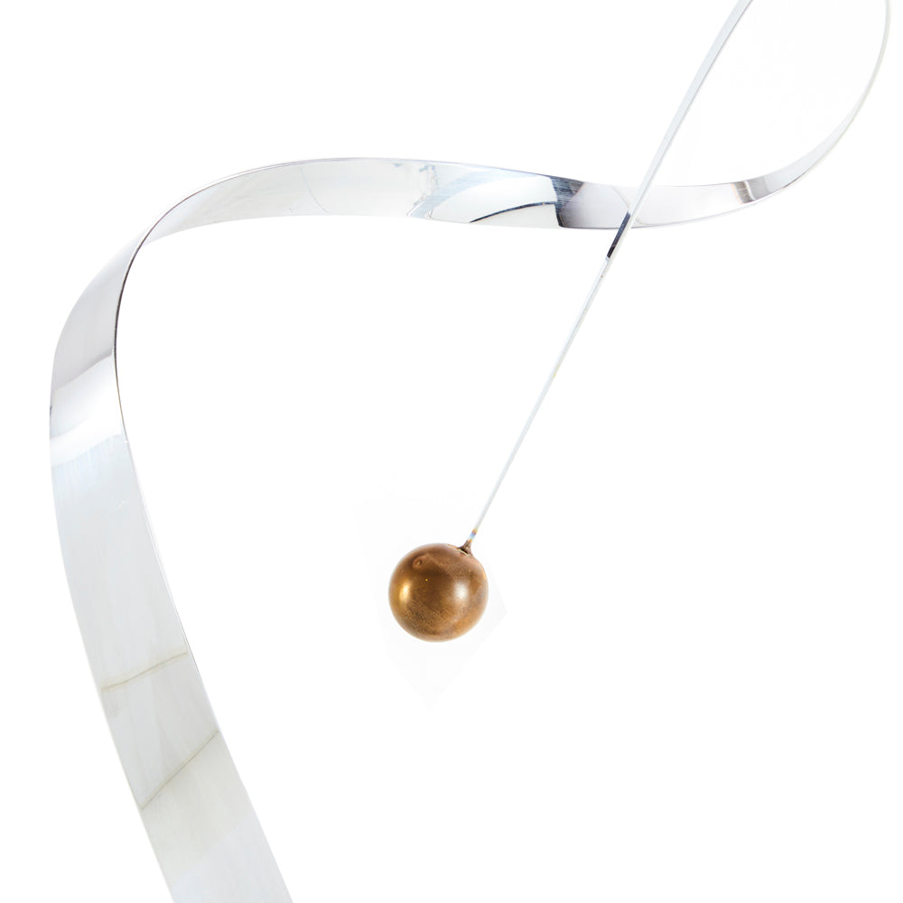 Details: Chrome airplane propeller floor sculpture fixed to bronze base Dimensions: 67" H x 12" W x 12" D Quantity: 1