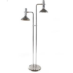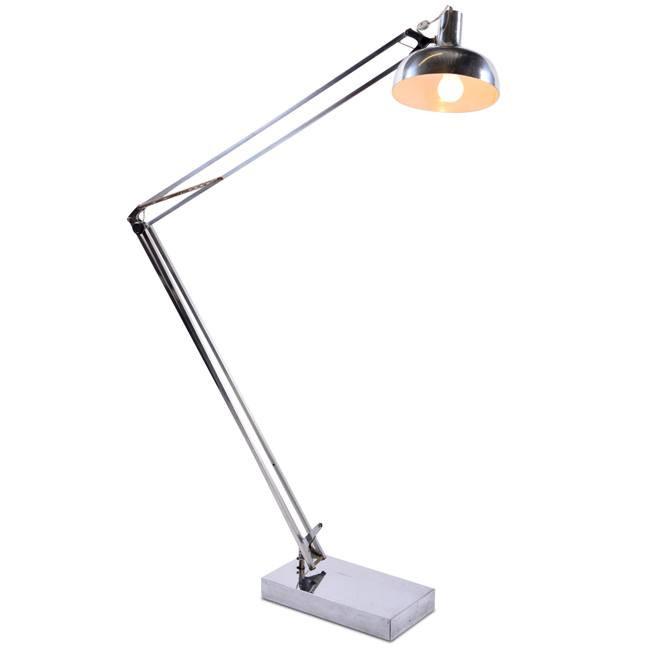 Details: Chrome Floor Lamp, Adjustable Arm, Reflective Rectangular BaseDimensions: 70" H x 24" Depth x 10.5" Diameter of Shade Base : 8.75" W x 16"...