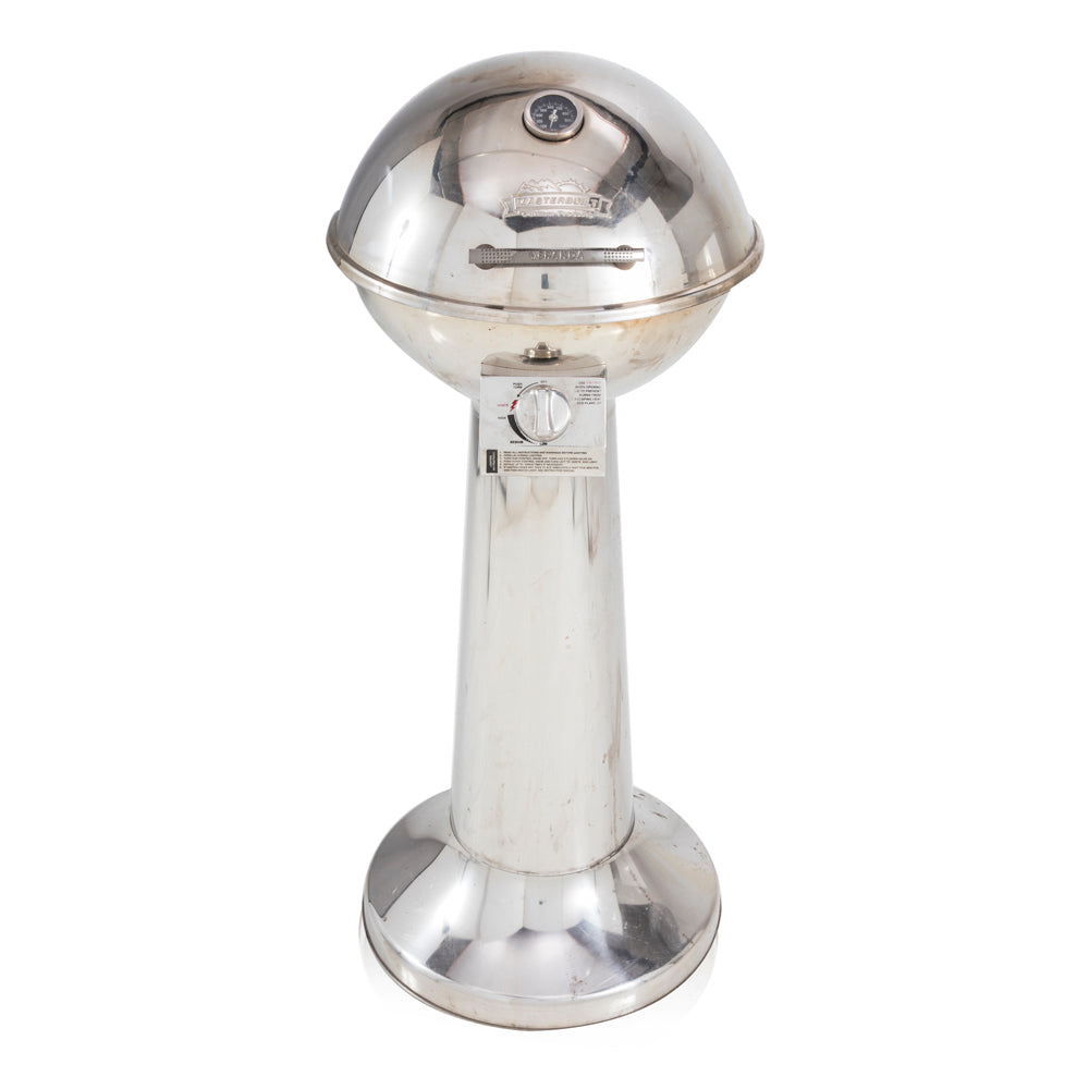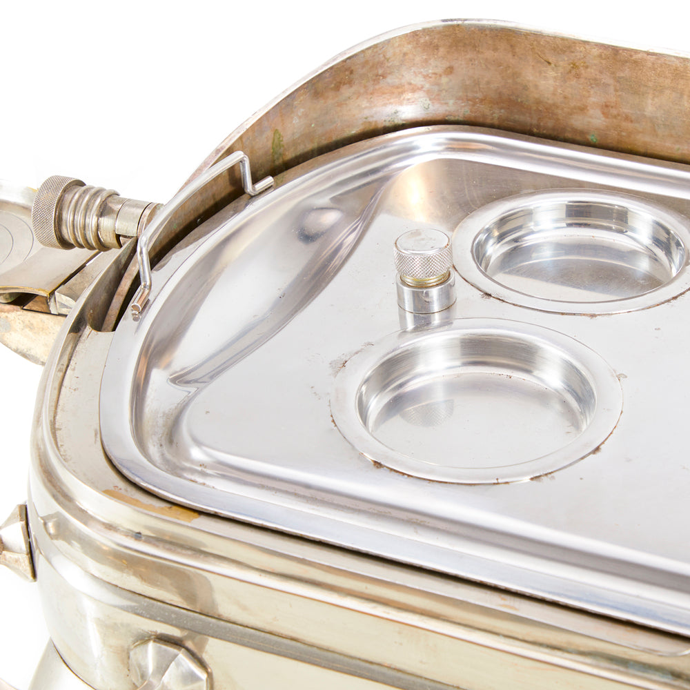 Details: Vintage egg-shaped tea kettle with brushed metal exterior.