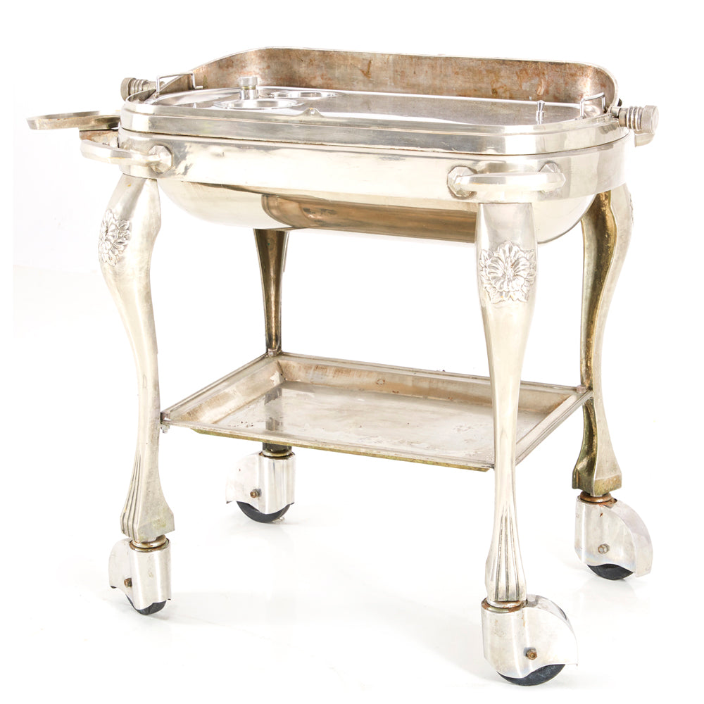 Details: Vintage serving cart on wheels Dimensions: 42" H x 50" W x 24" D Quantity: 1