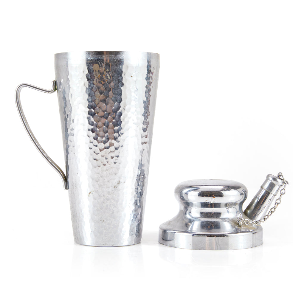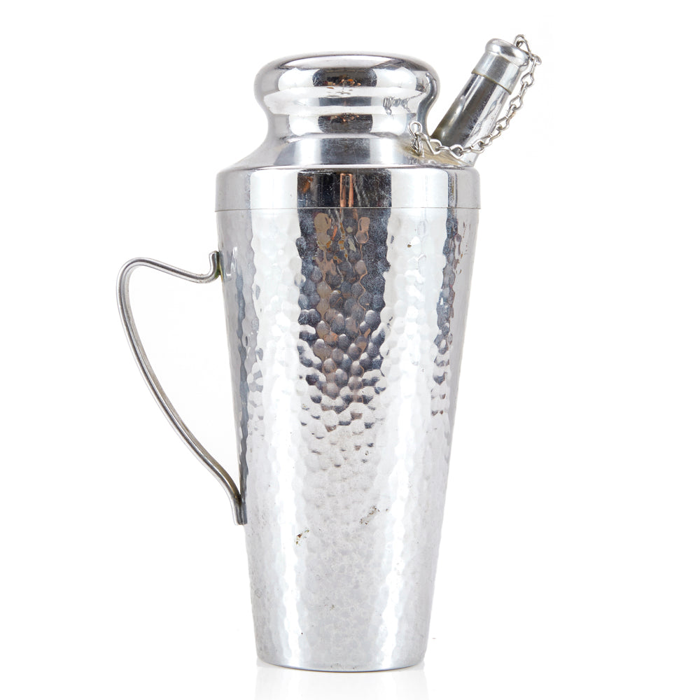 Details: Hammered chrome cocktail shaker with pouring spout Dimensions: 9" H x 4" W x 6" D Quantity: 1