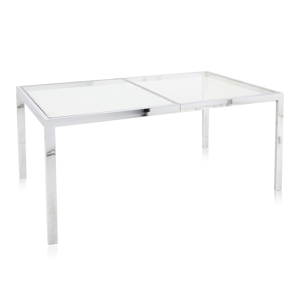 Details: Rectangular chrome dining table with glass top Dimensions: 29" H x 60" L x 38" W