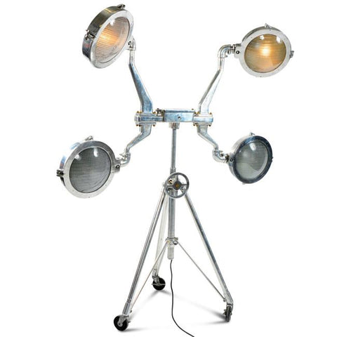 Details: Metal table lamp with conical shade and rustic legs. Dimensions: 24" H x 20" D