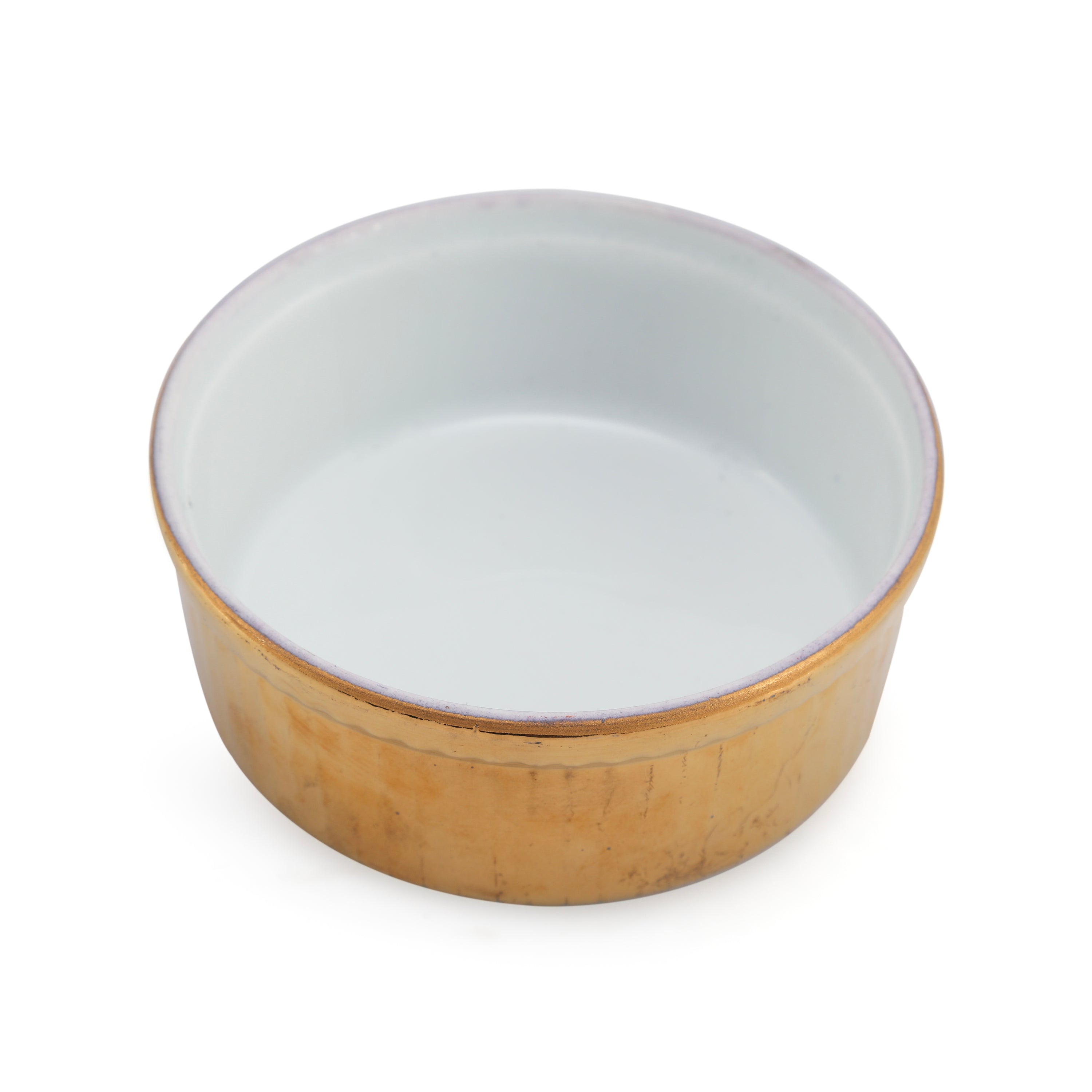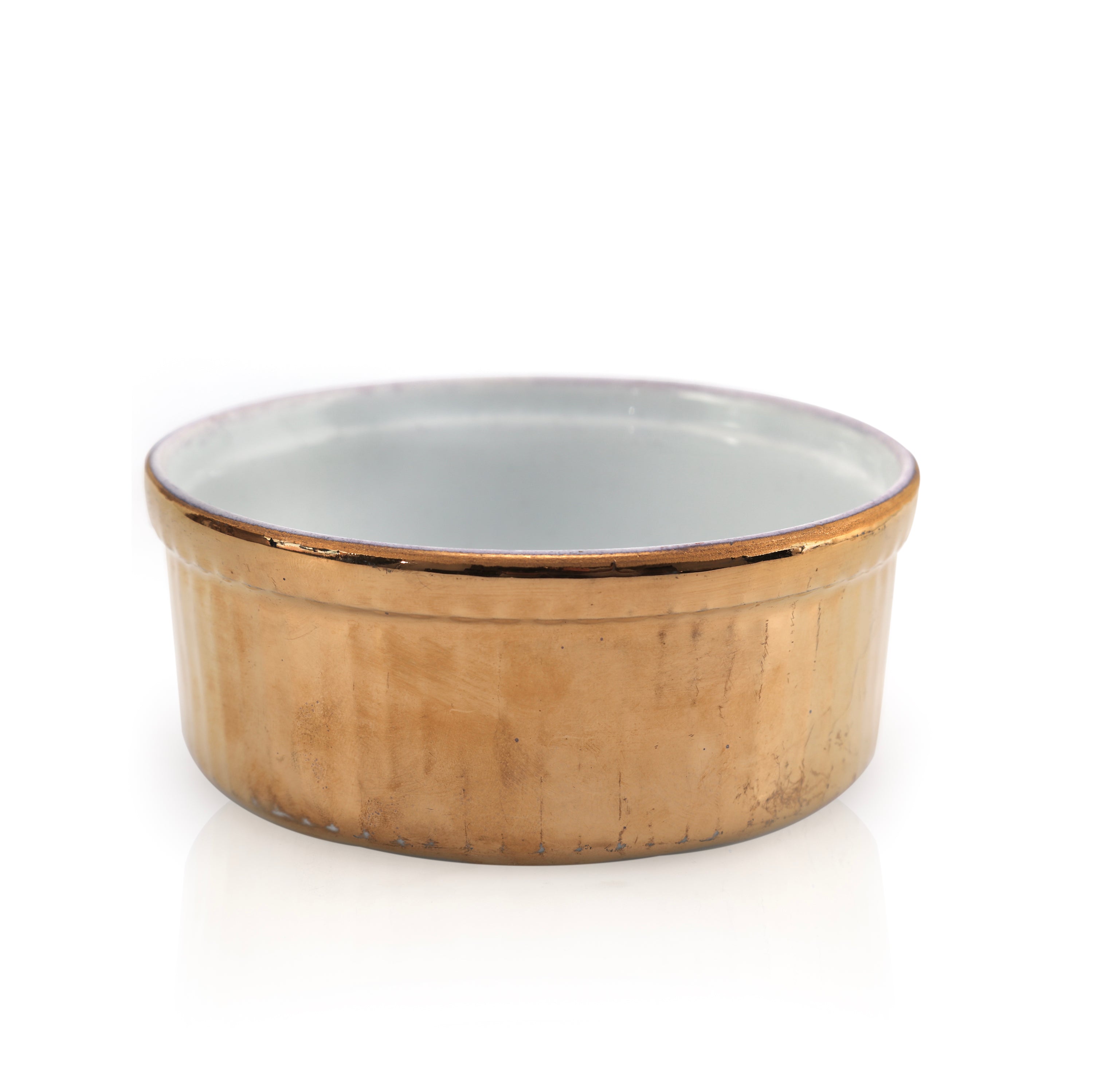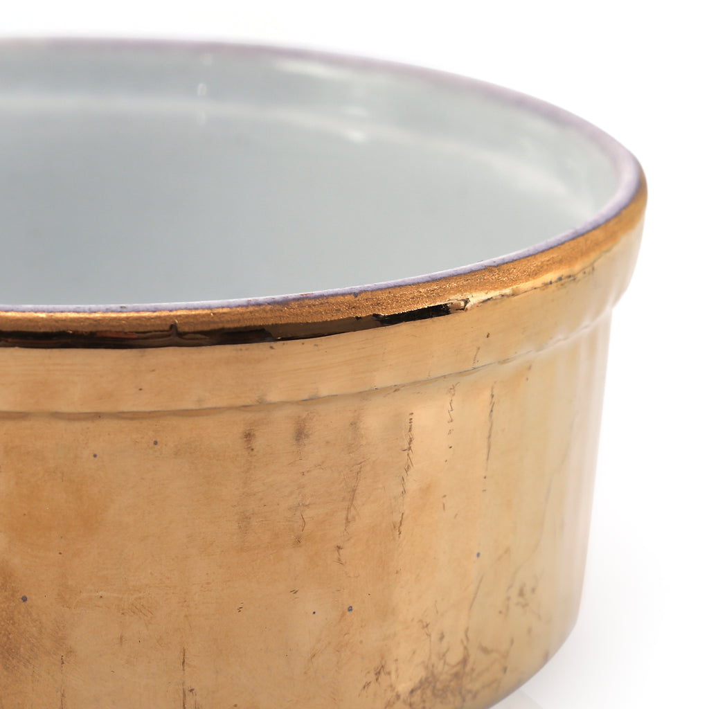 Details: Small gold decorative bowl. Dimensions: 4" H x 3" W x 3" L
