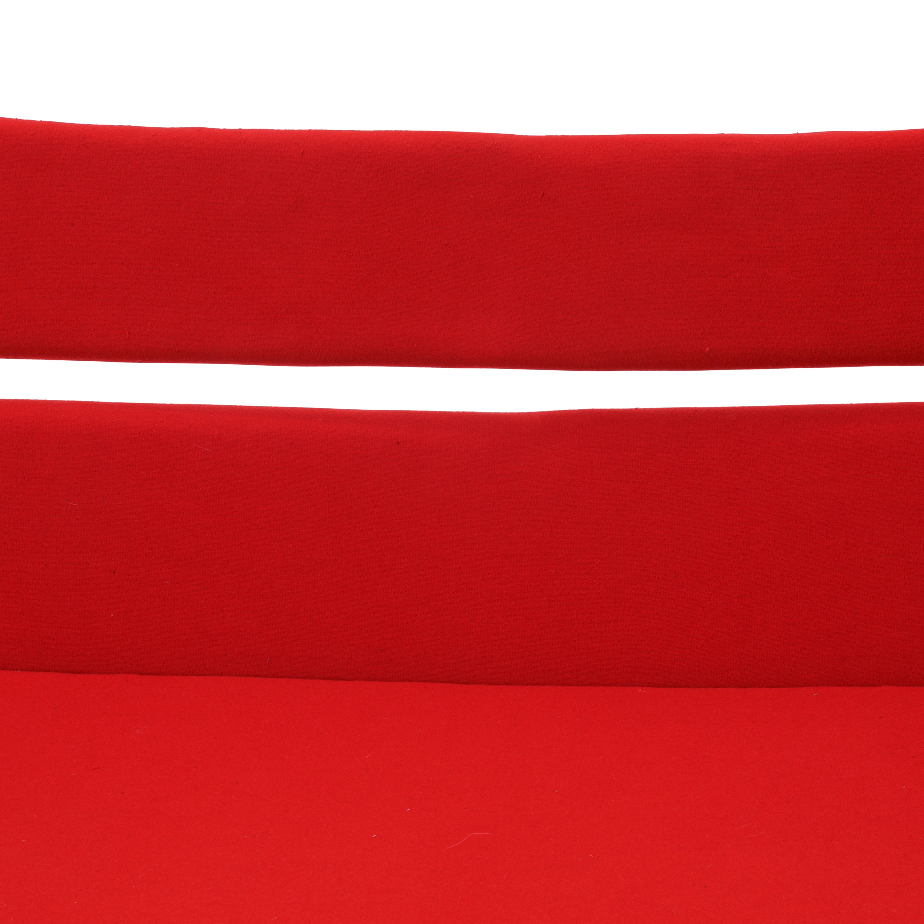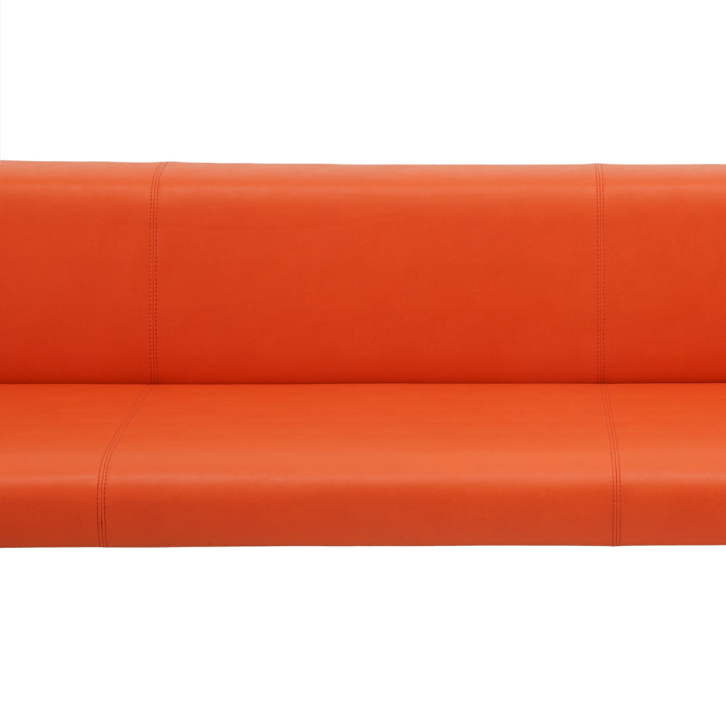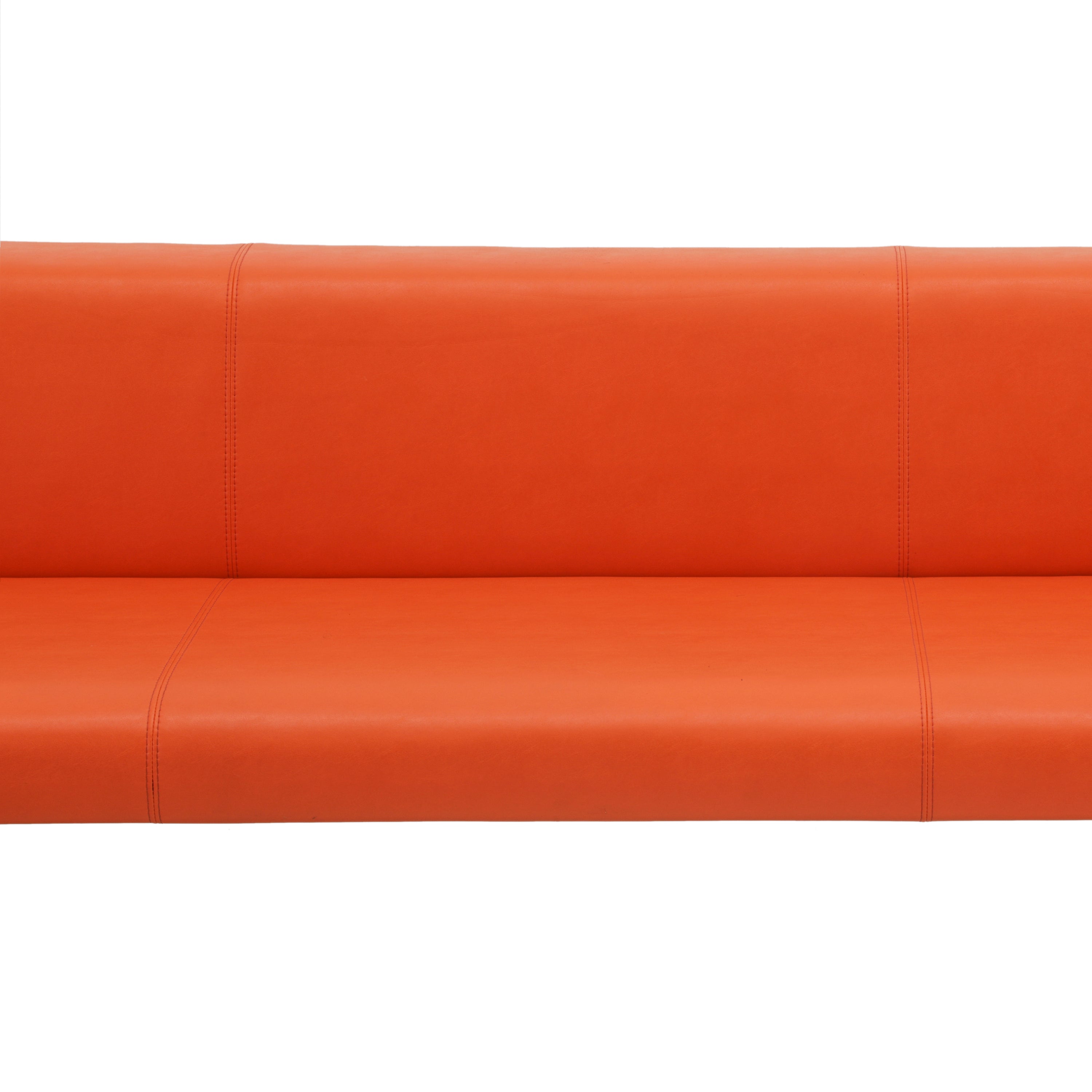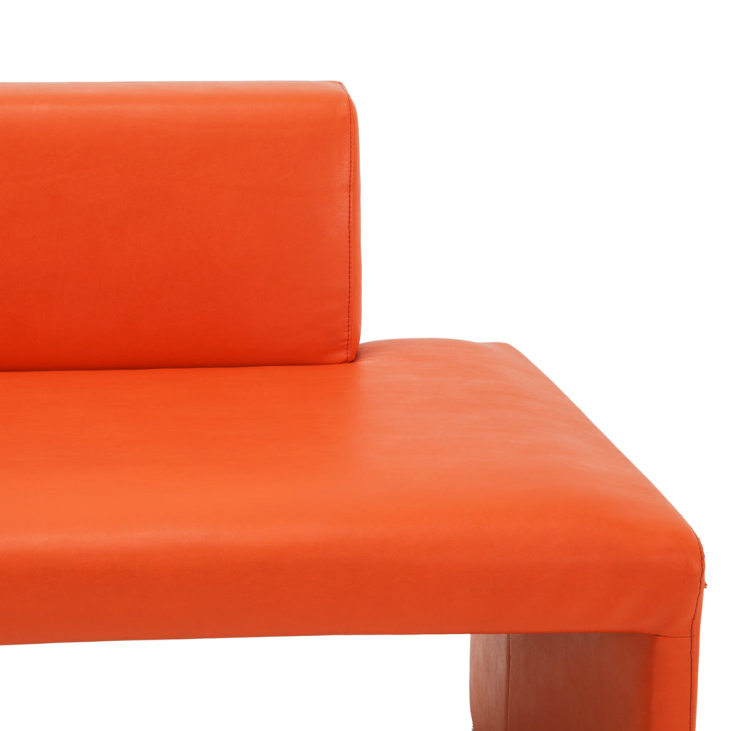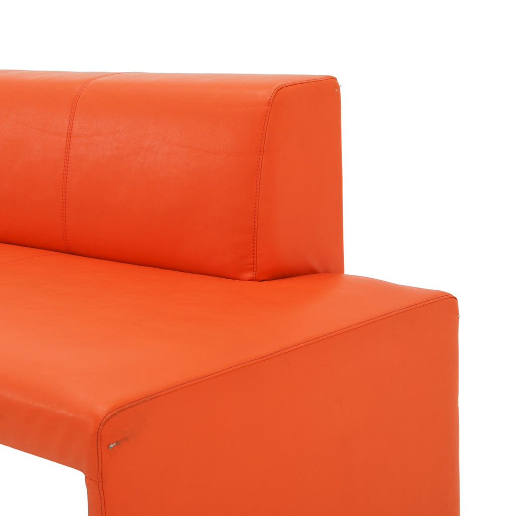 Details: Curved turquoise futuristic lounge chair with rounded grey metal base. Piece is constructed of leather upholstery, with polished metal legs. Dimensions: 36" H x 88"...