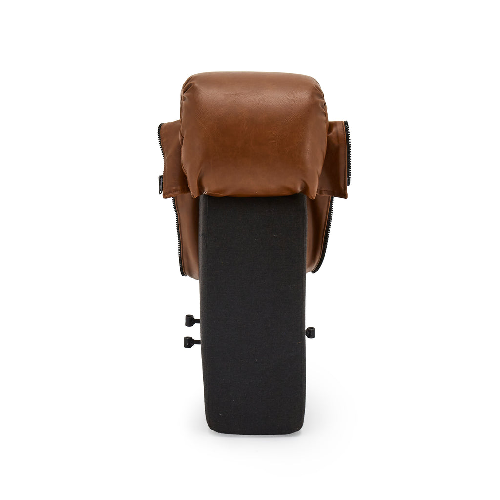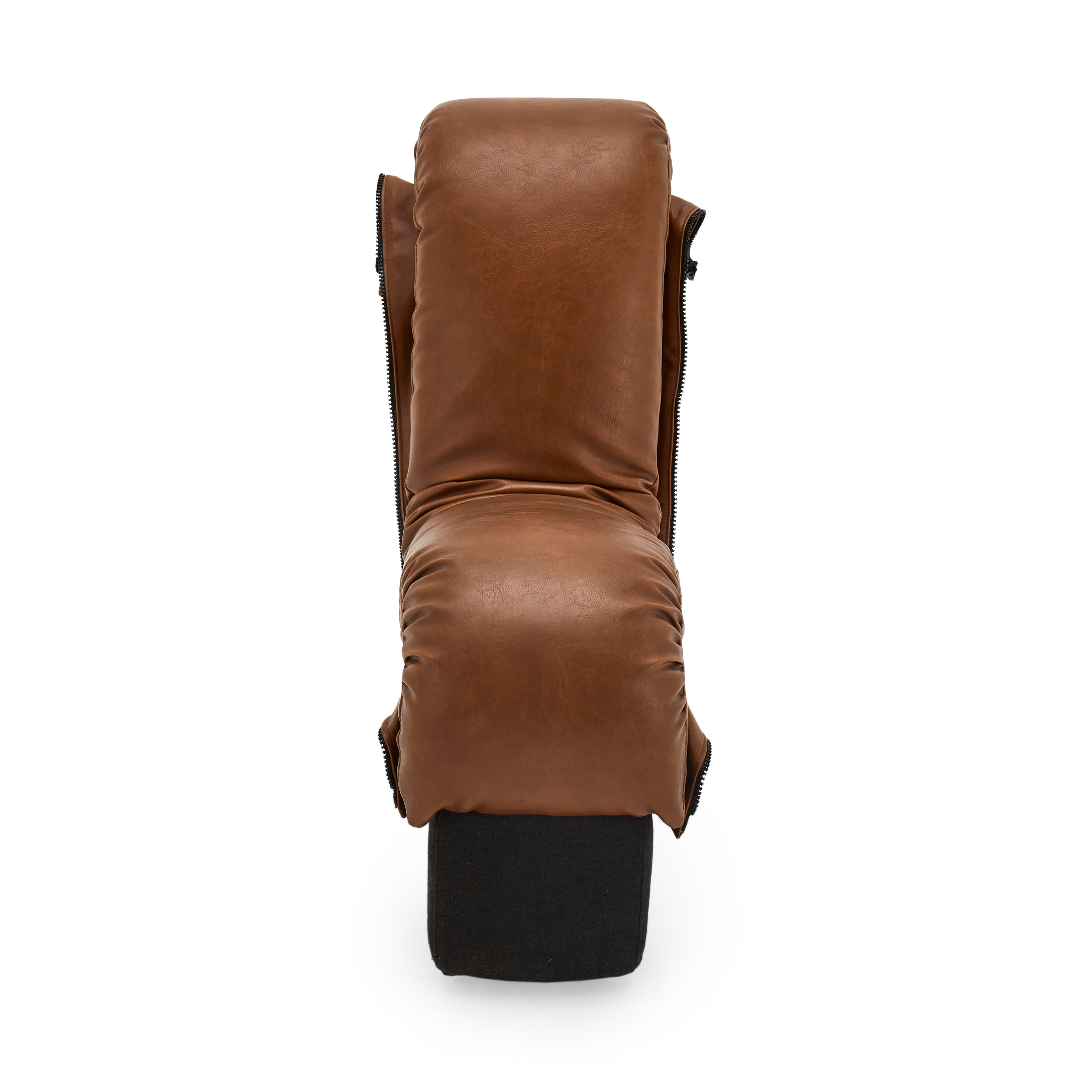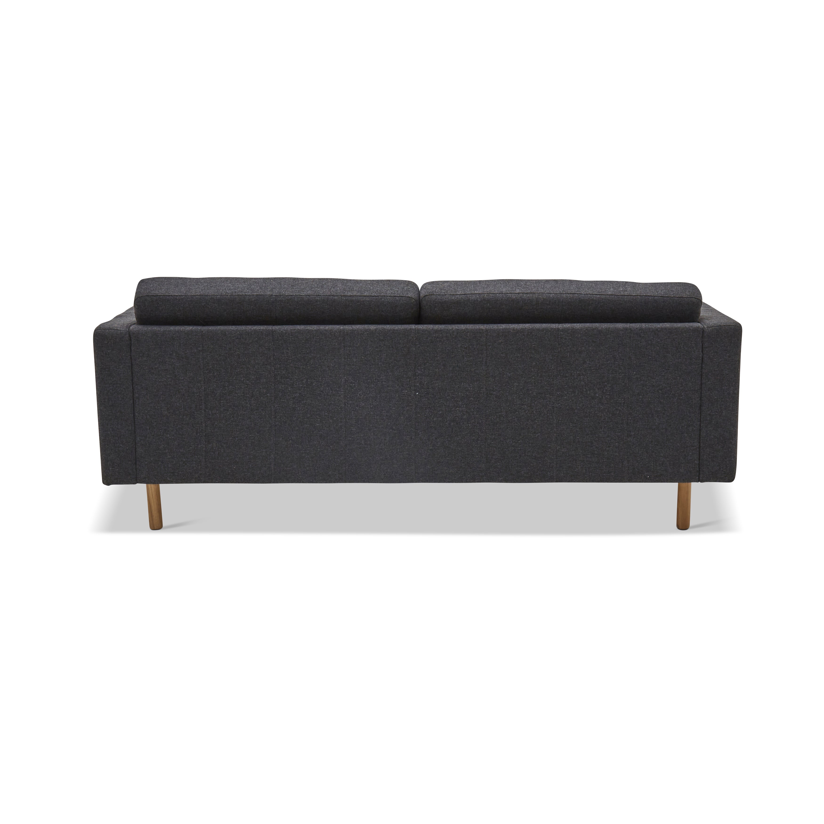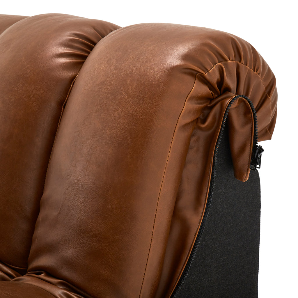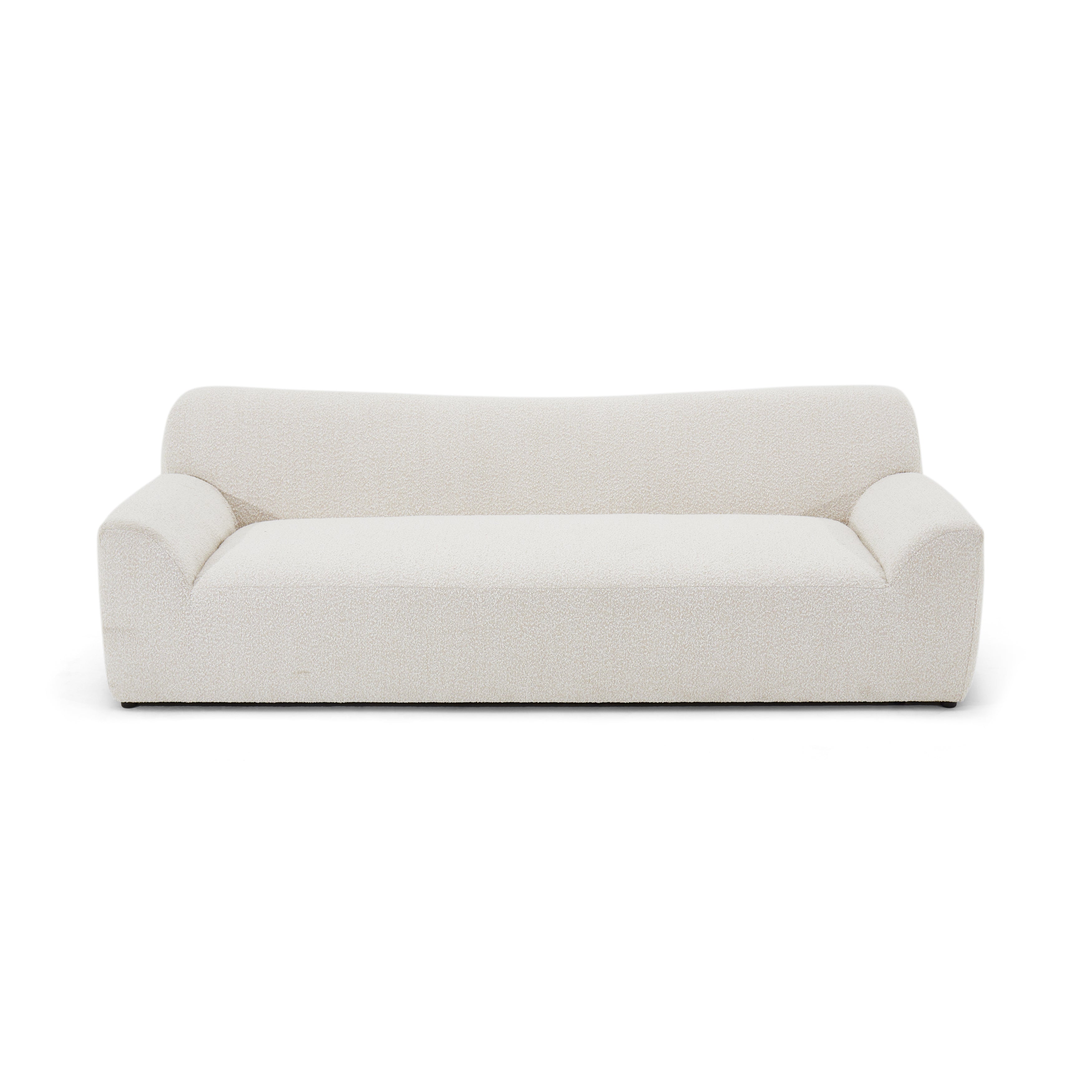 Details: Brown upholstered sofa with unique curved armchair style; by Steve Leonard for Brayton International. (Recently reupholstered). Dimensions: 24" H x 98" W x 32"...