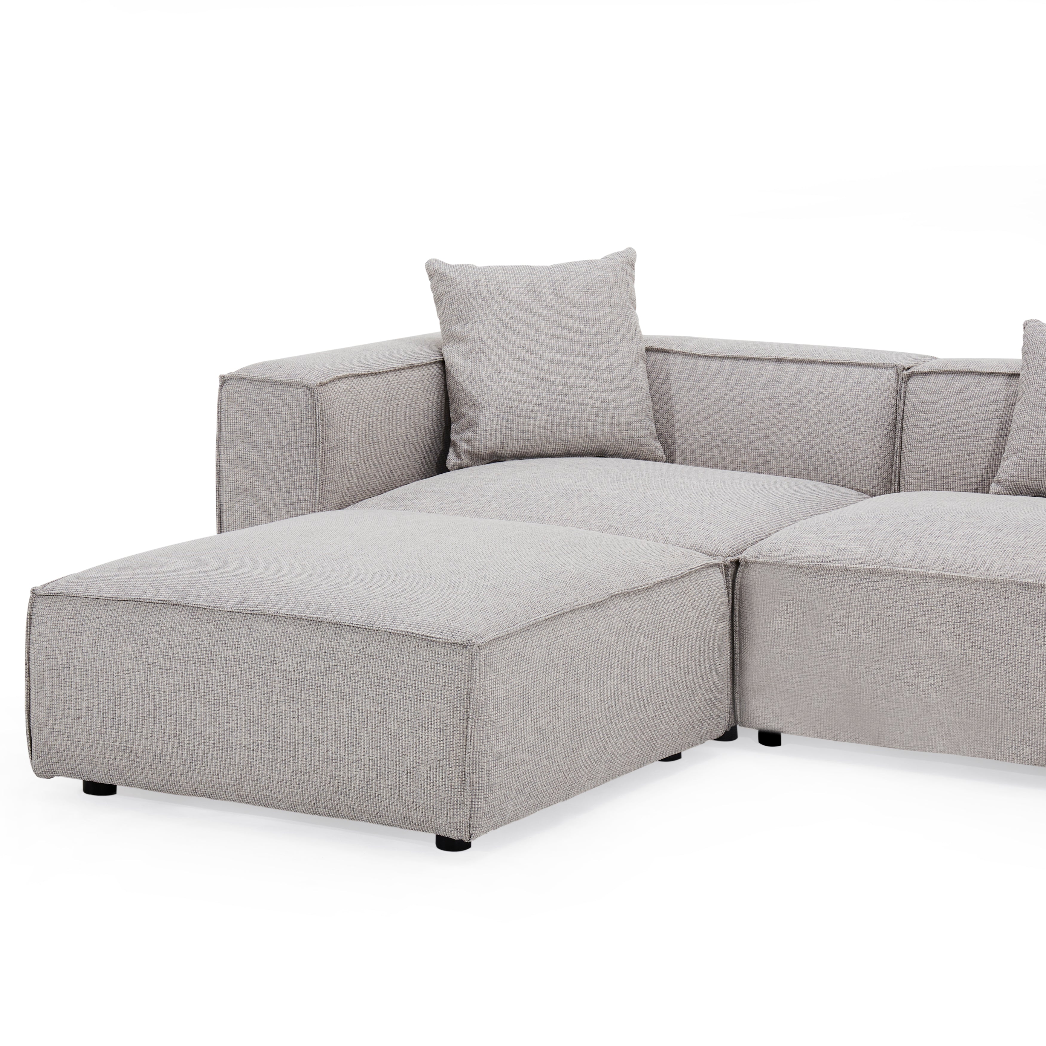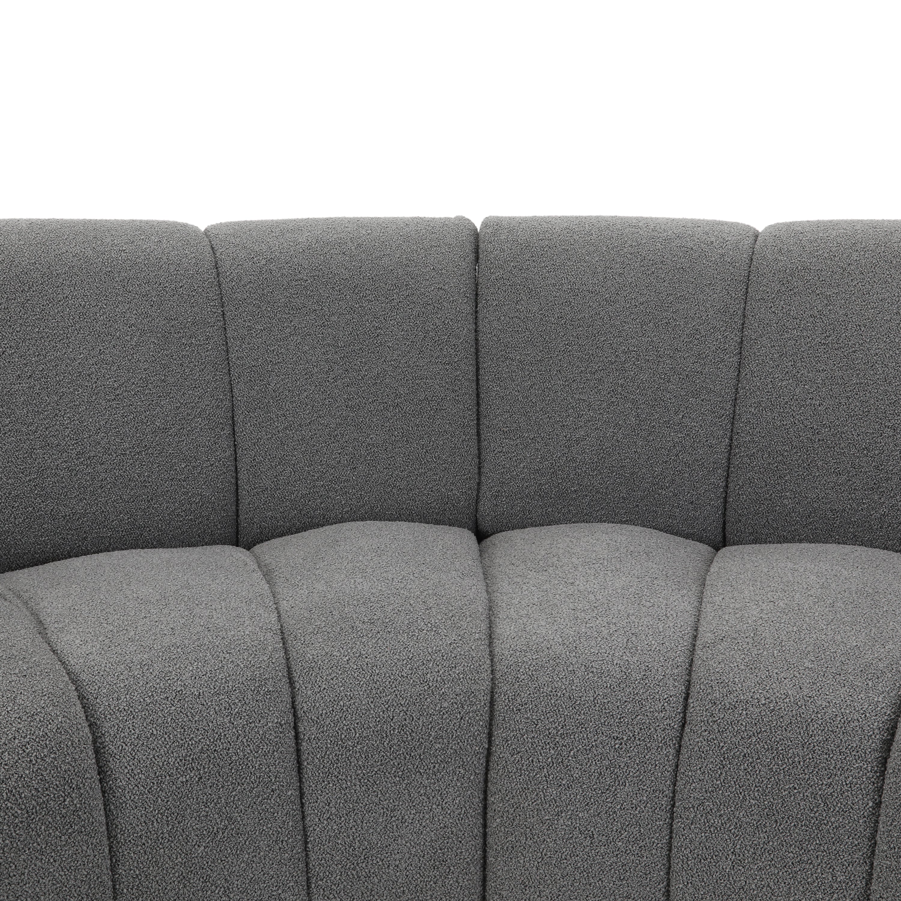 (NOTE: PRICE IS PER PIECE, FULL SECTIONAL = $900 + tax) Details: Grey 4-piece sectional with soft boucle fabric and deep channel tufting. Dimensions: Full...