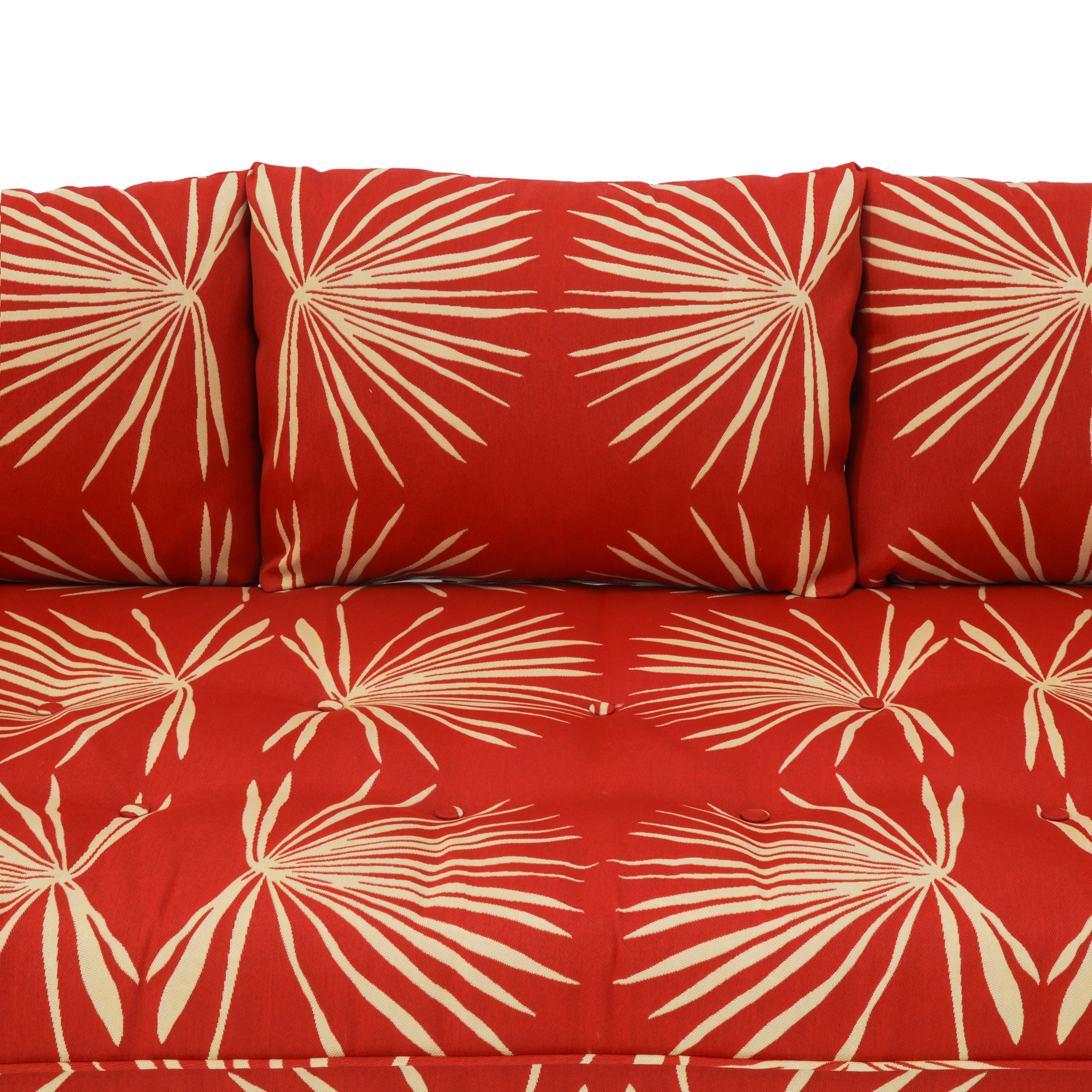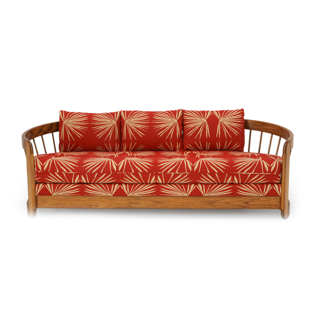 Details: Dark wood outdoor sofa with white / cream cushions. Slatted frame. Heavy - requires 2-3 people to lift. Matching chair available (rented separately) Dimensions:...