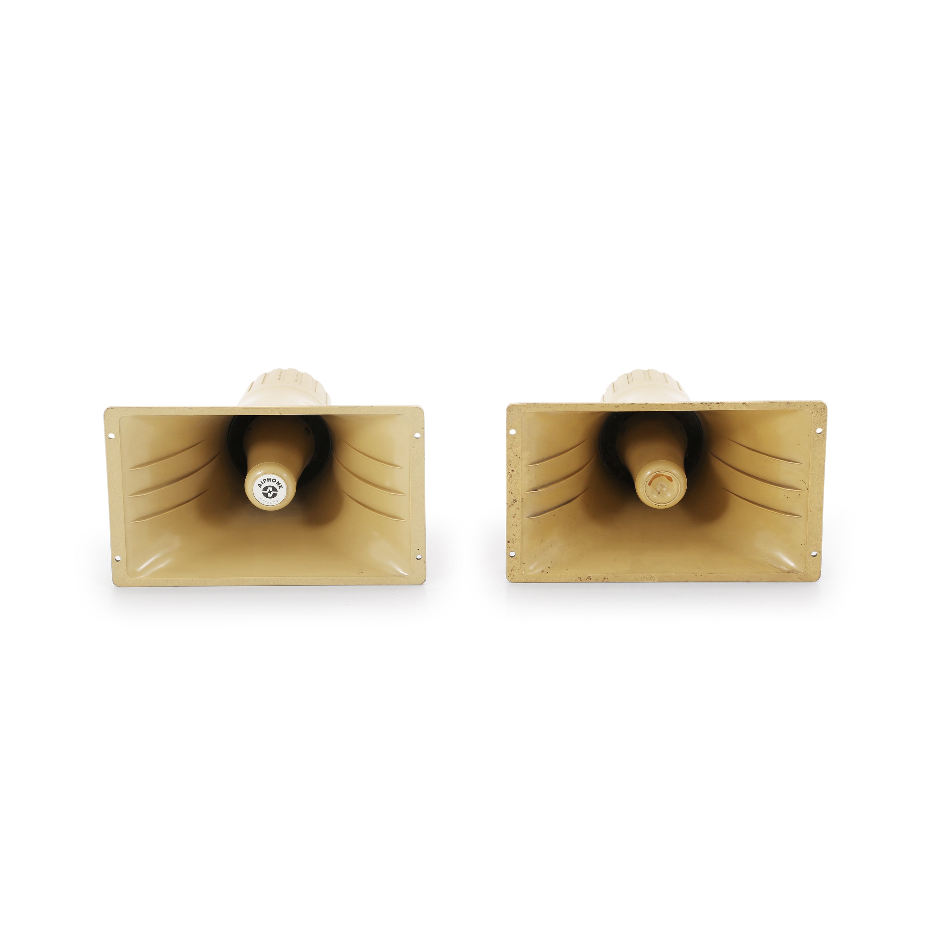 Brown & Cream Wood Framed Stereo Speaker and Tuner Cubes