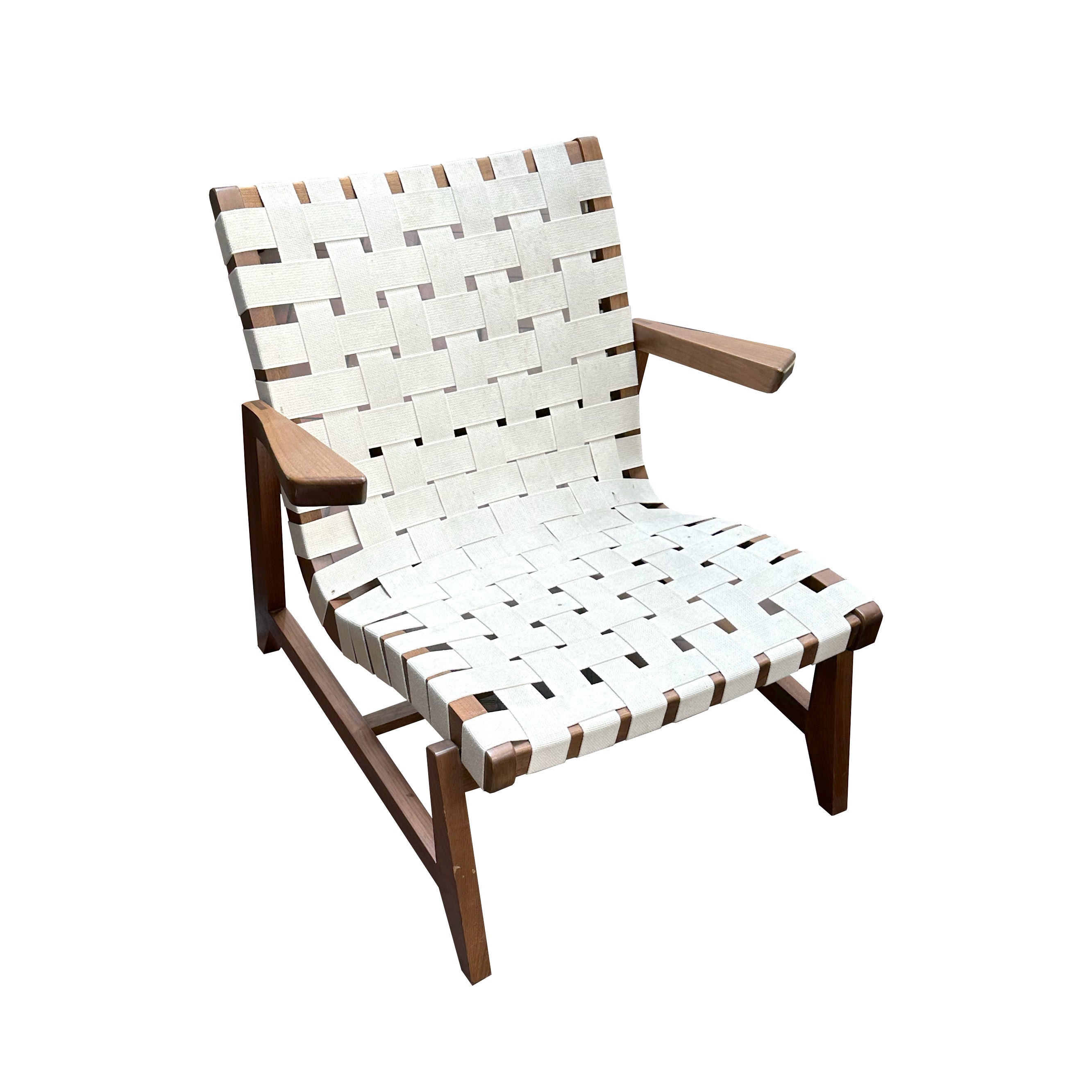 Details: Wooden modern lounge chair with raw brown leather sling seat and back Dimensions: 28" H x 32" W x 22" D