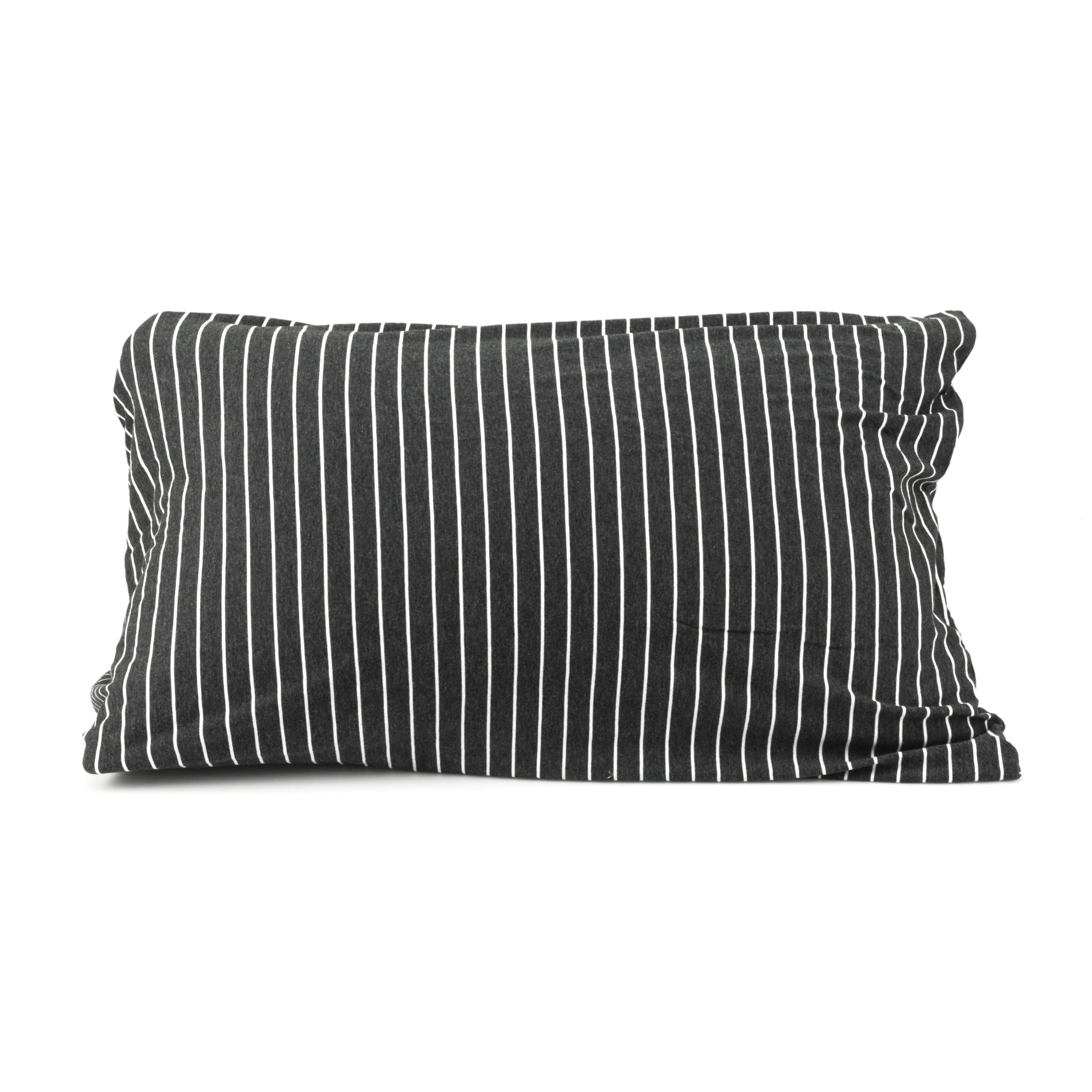 Description: Black and white striped patio umbrella with black metal stand. Umbrella is constructed of durable fabric and metal. Dimensions: 99" H x 82"...