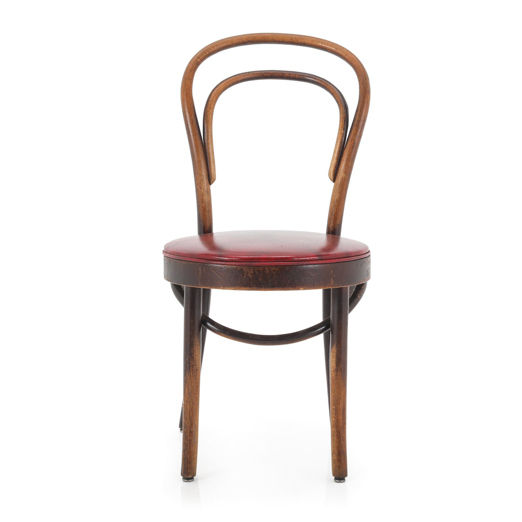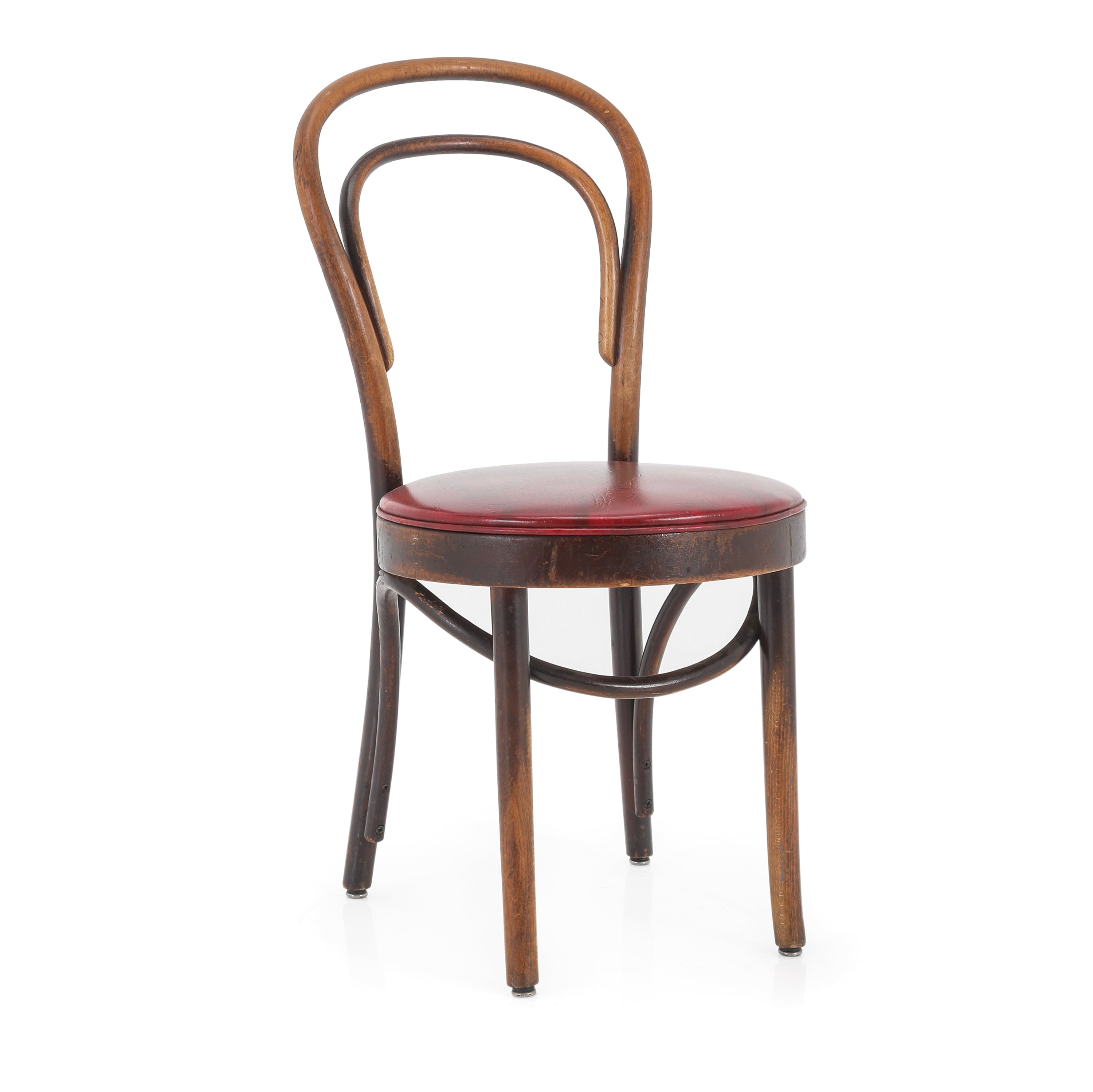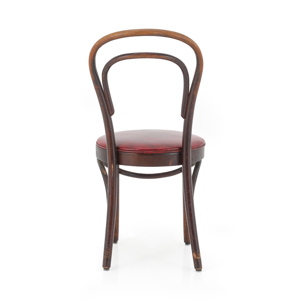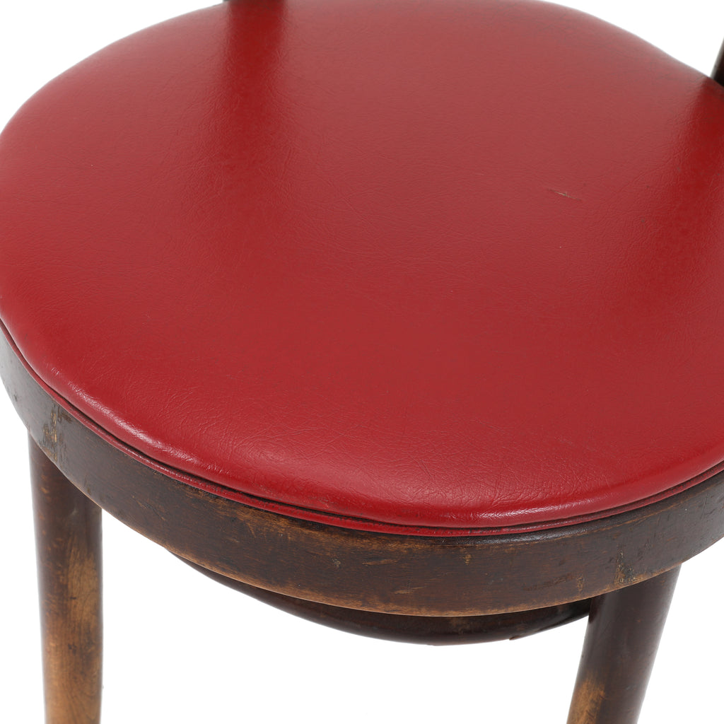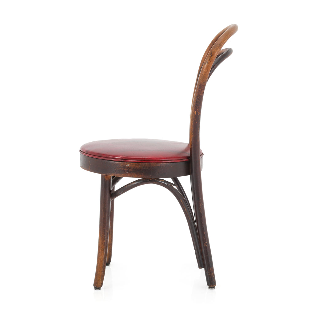 Details: Red thonet chairs with red cushions. Dimensions: 34" H x 16" W x 19" D Quantity: x5 Red Cushion, x5 Red and Black Cushion