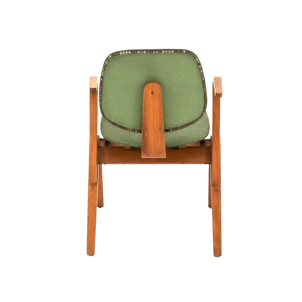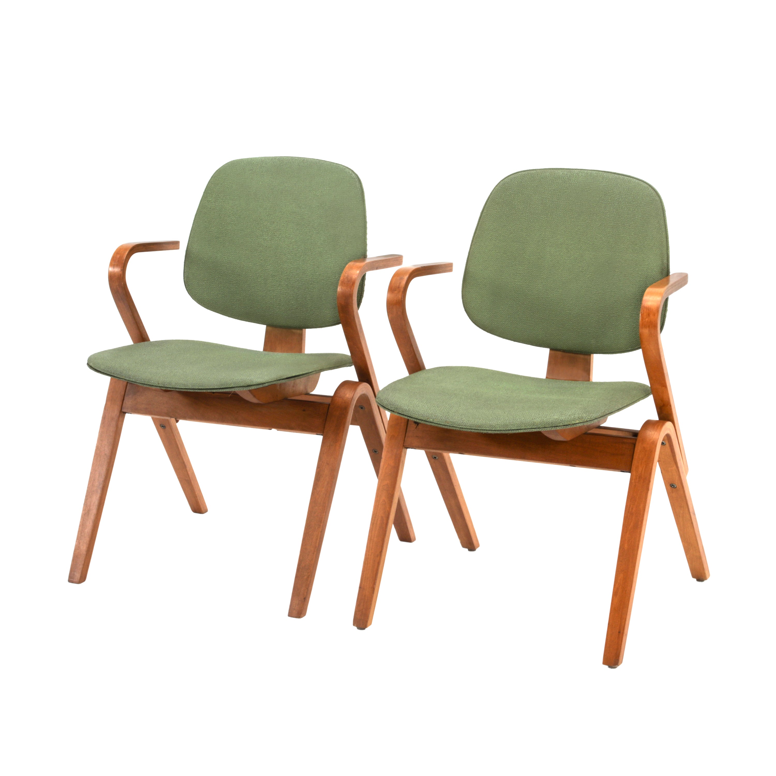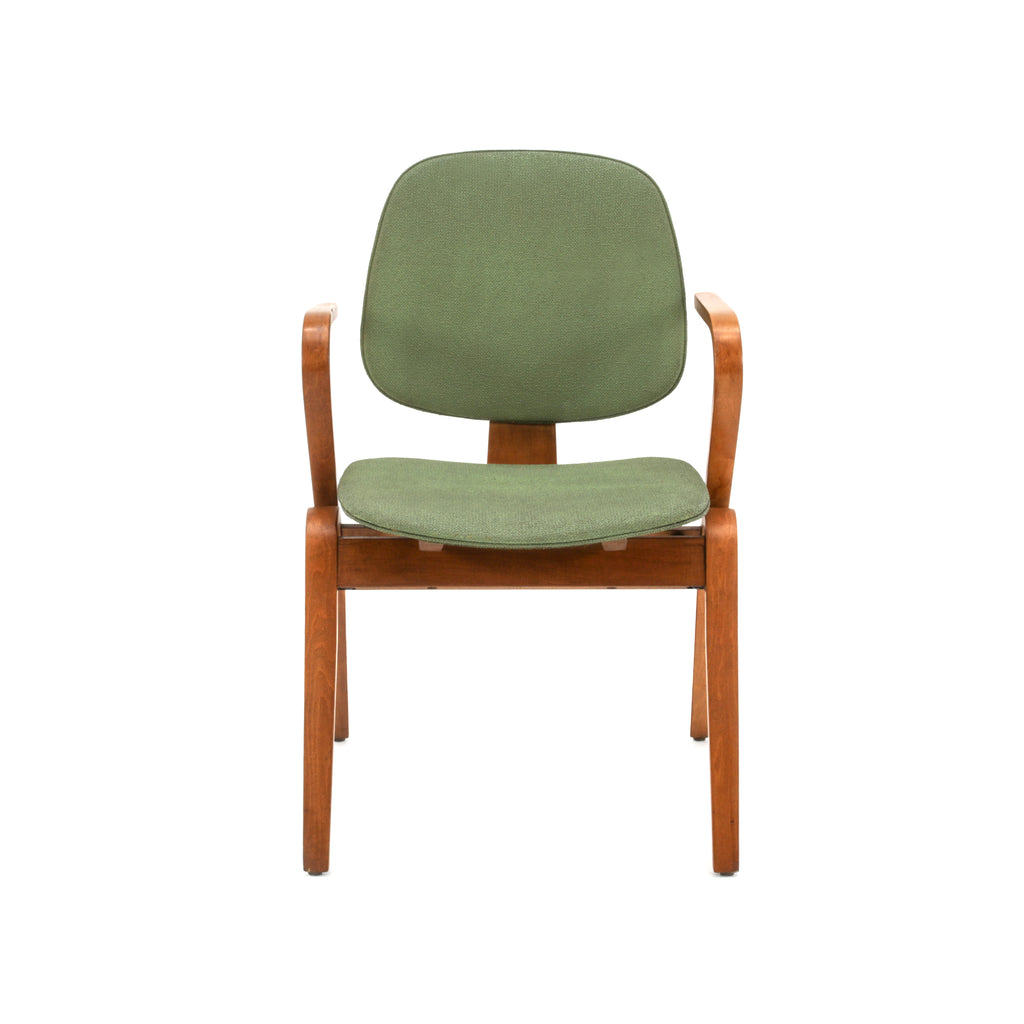 Details: Green vinyl seating / backrest with bentwood legs and armrests. Dimensions: 32.5" H x 21" W x 24" D Quantity: 8