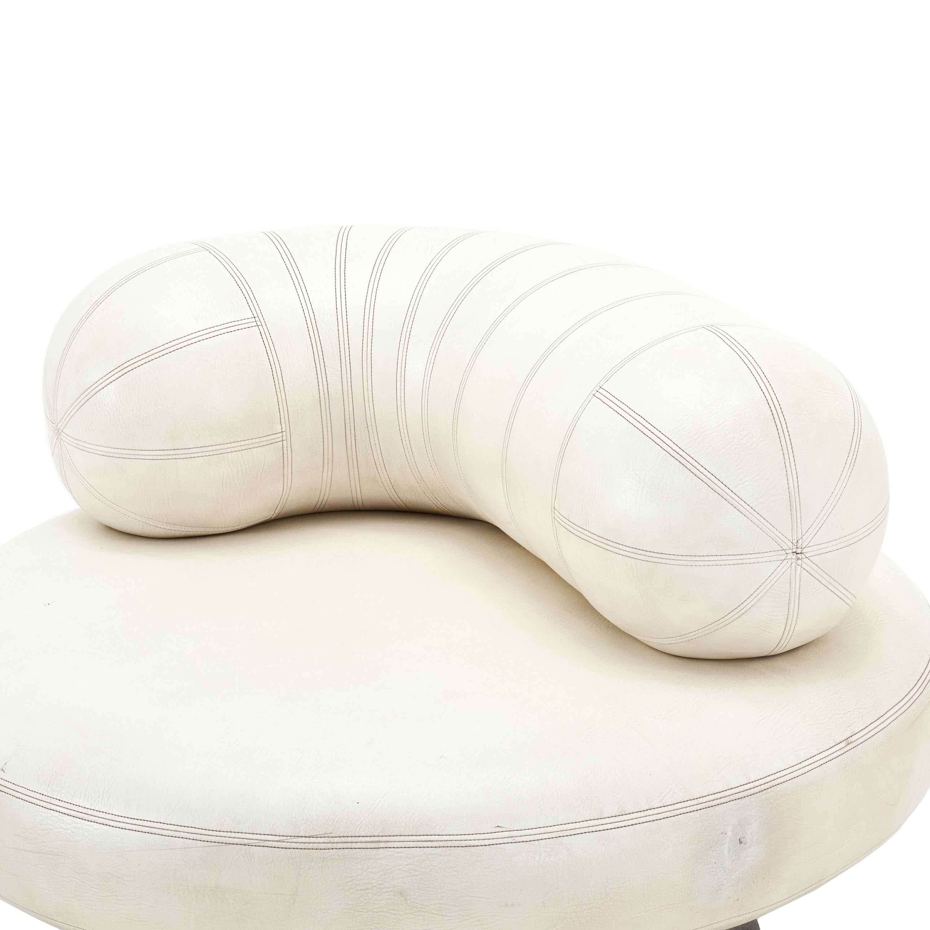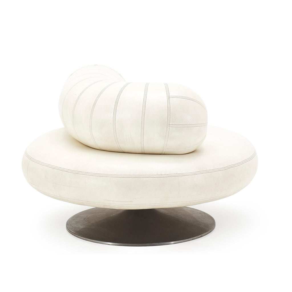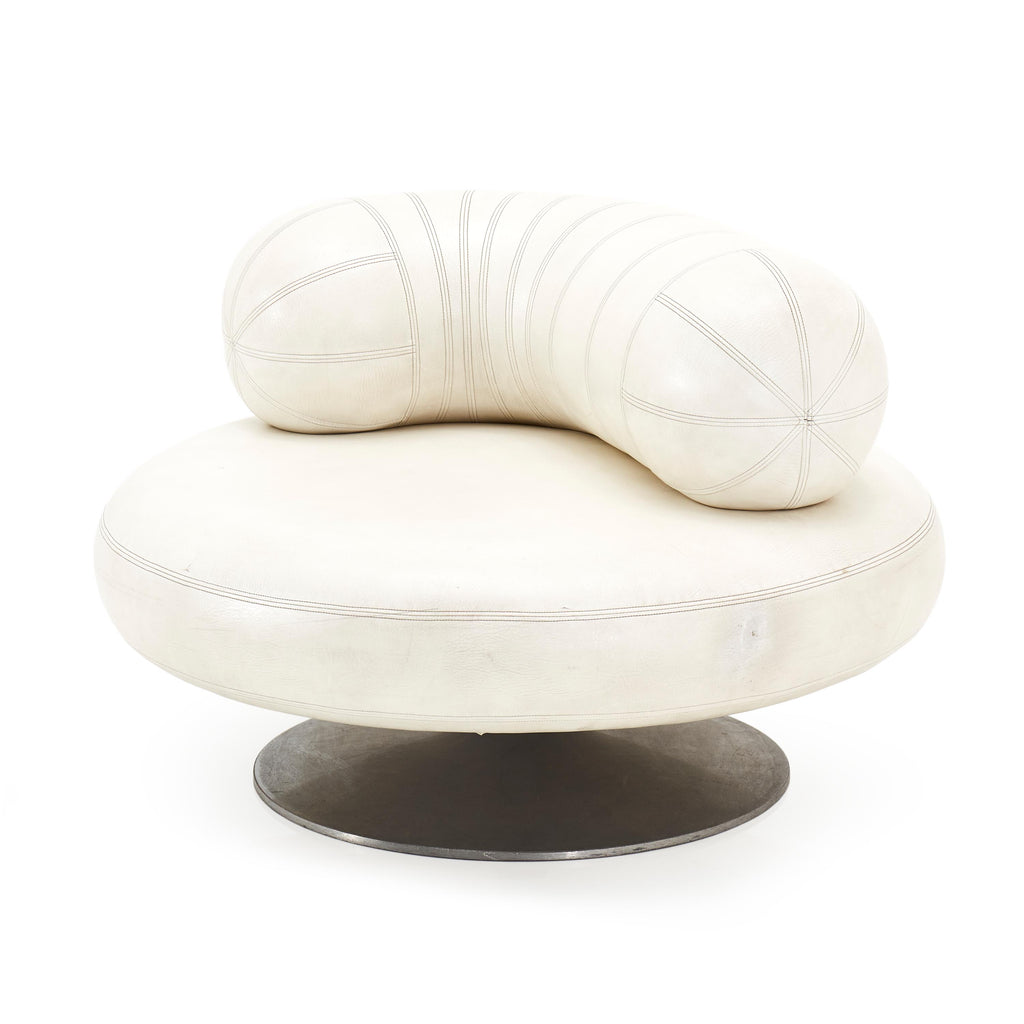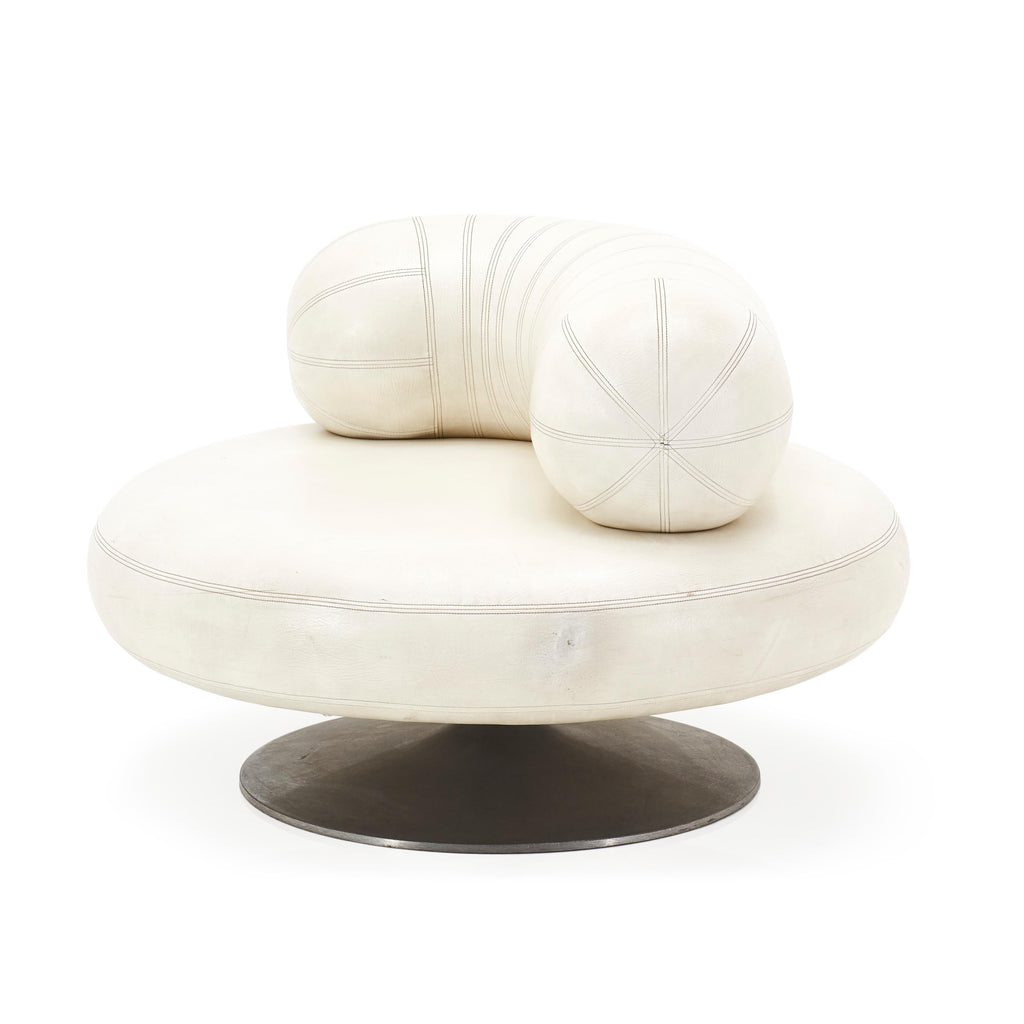 Details: White leather mod pearl chair with tubular back support cushion and round silver base Dimensions: 30" H x 43" W x 43" D