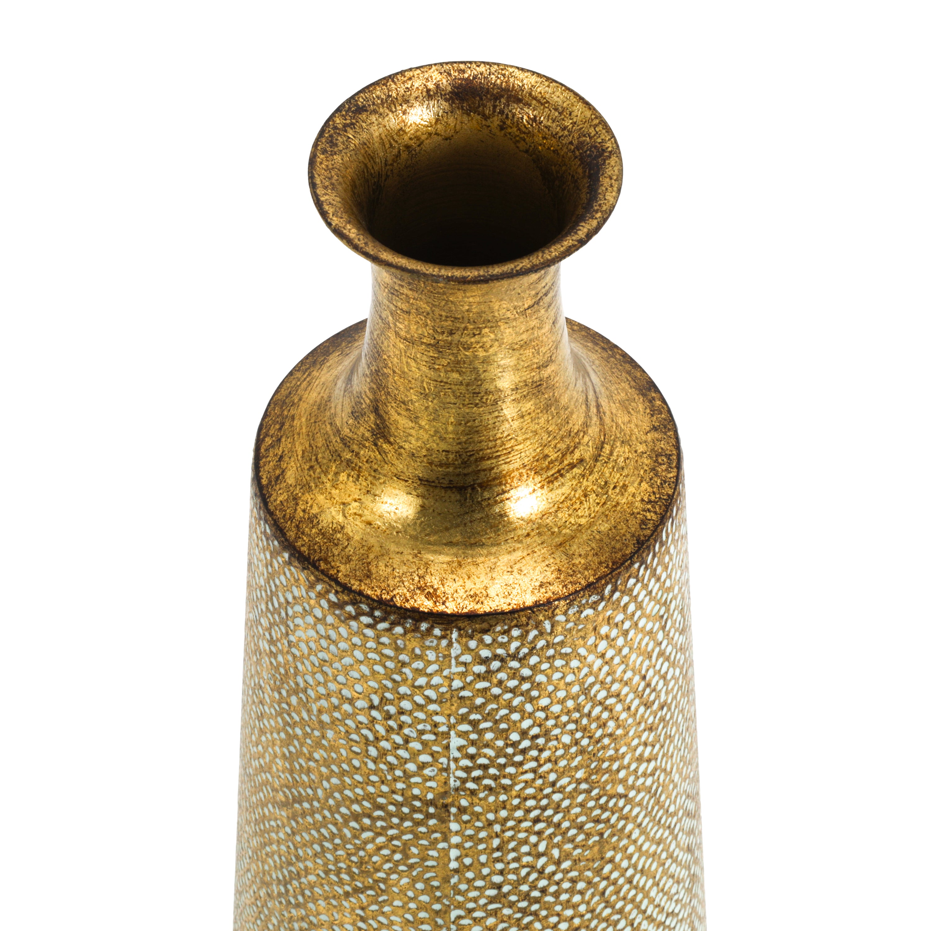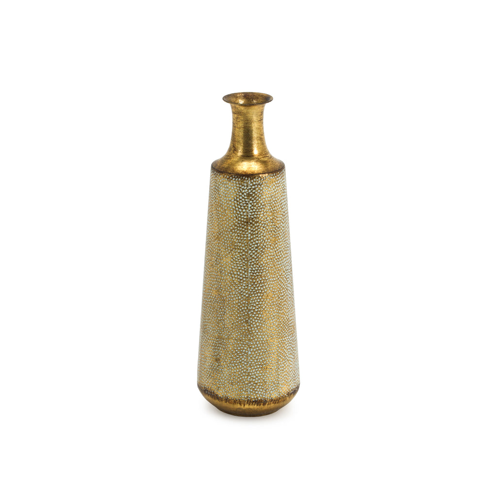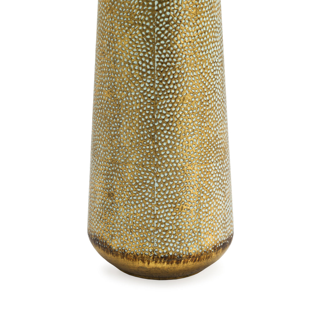 Details: Gold vase with textured exterior Dimensions: 24" H x 8" D