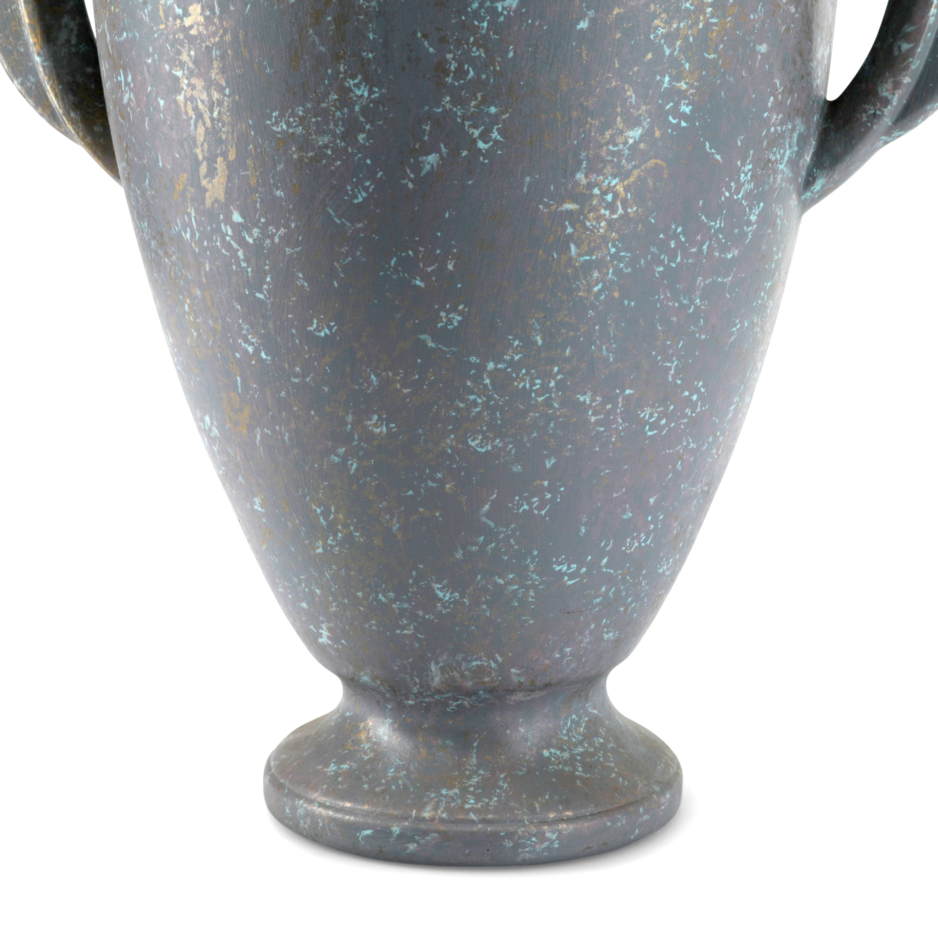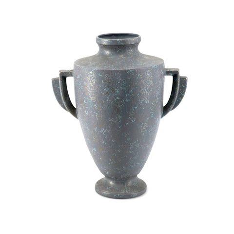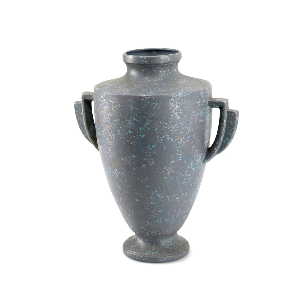 Details: Green, blue, brown, and grey painted ceramic vase Dimensions: 24" H x 7" D