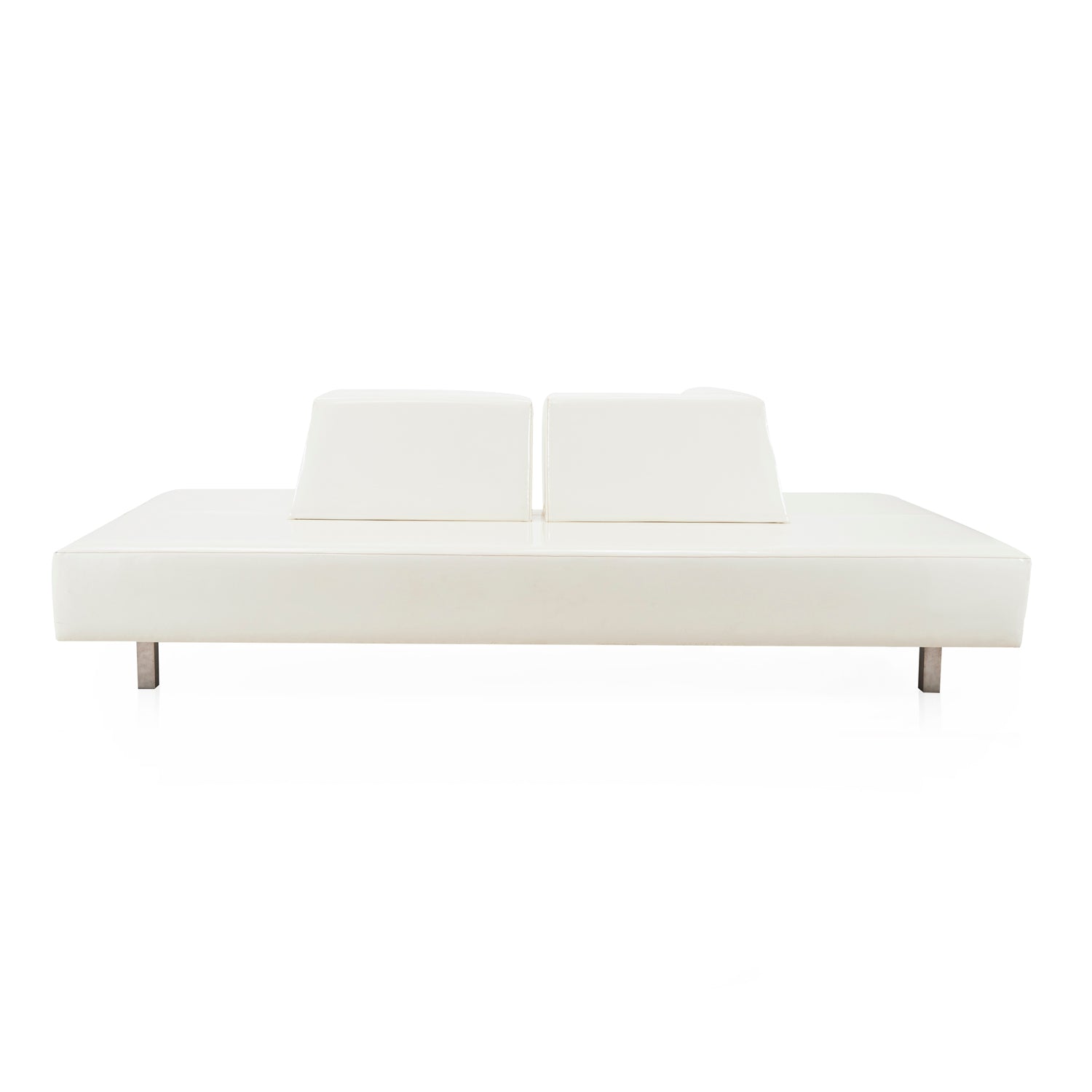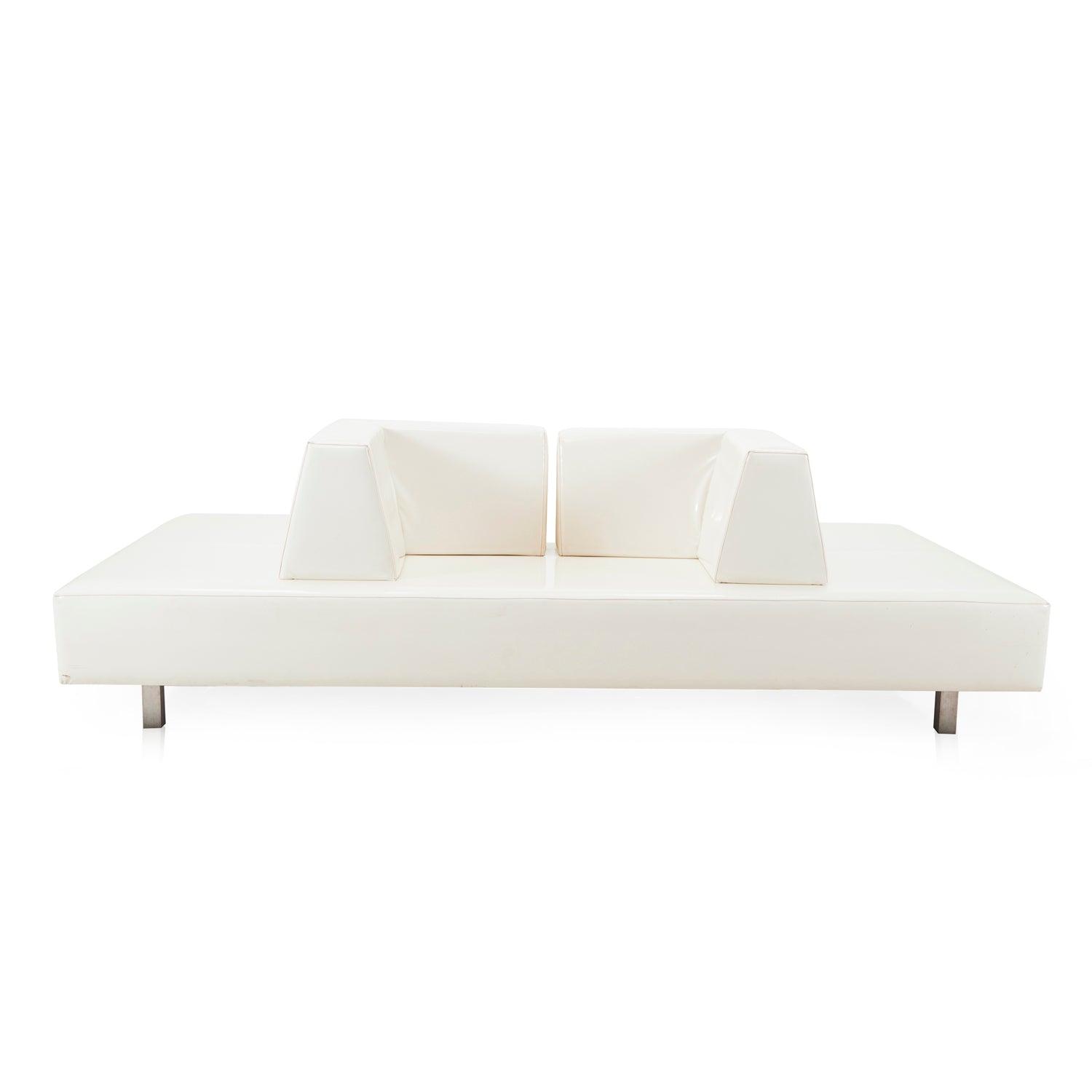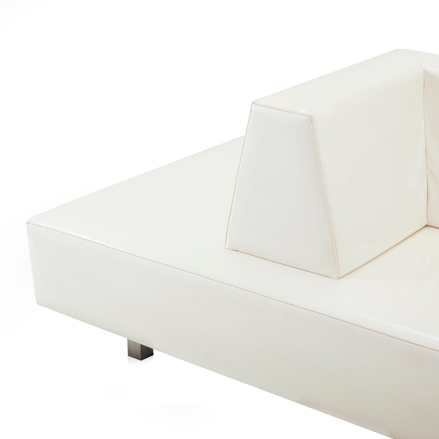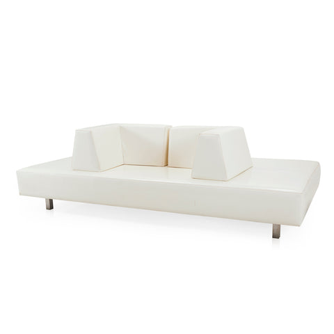 Details: Angular white leather lobby lounge seating Dimensions: 32" H x 103" W x 55.5" D Quantity: 1