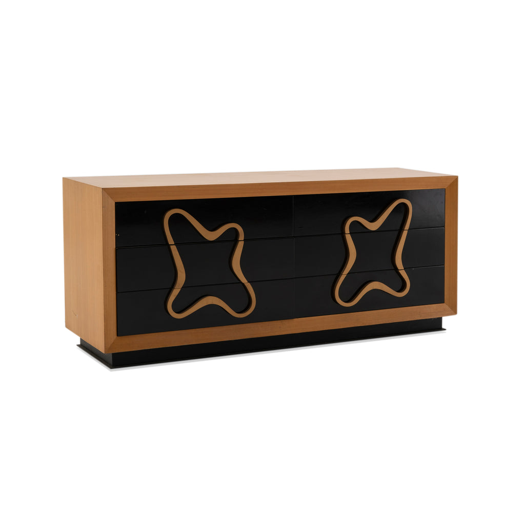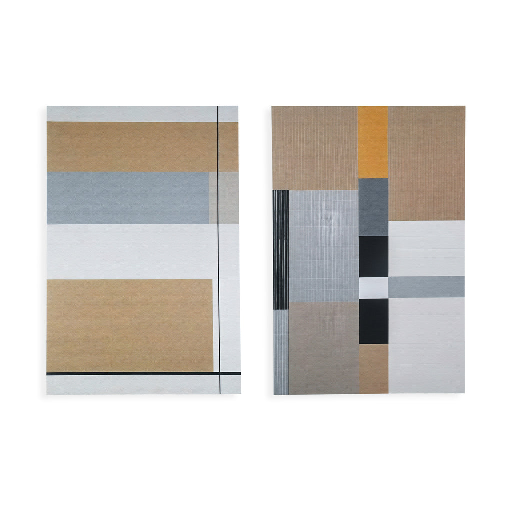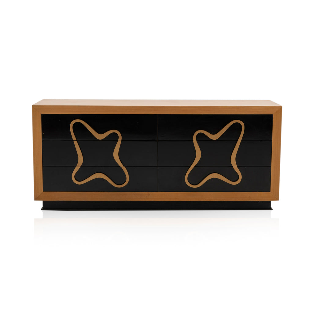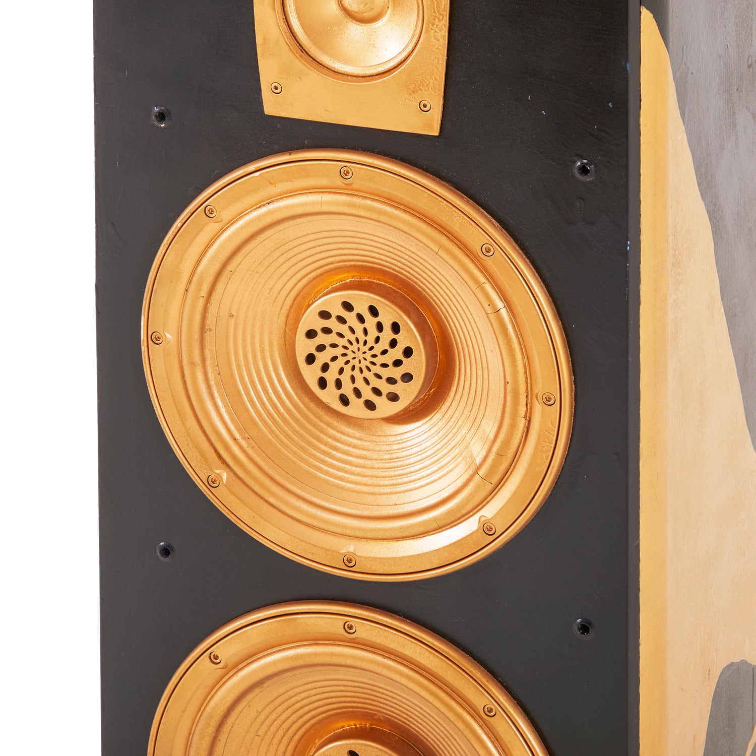 Details: Abstract wall sculpture of a wooden guitar with white and yellow checkered background, three spheres, and white and blue circular ornamentation Dimensions: 48" H x 12"...