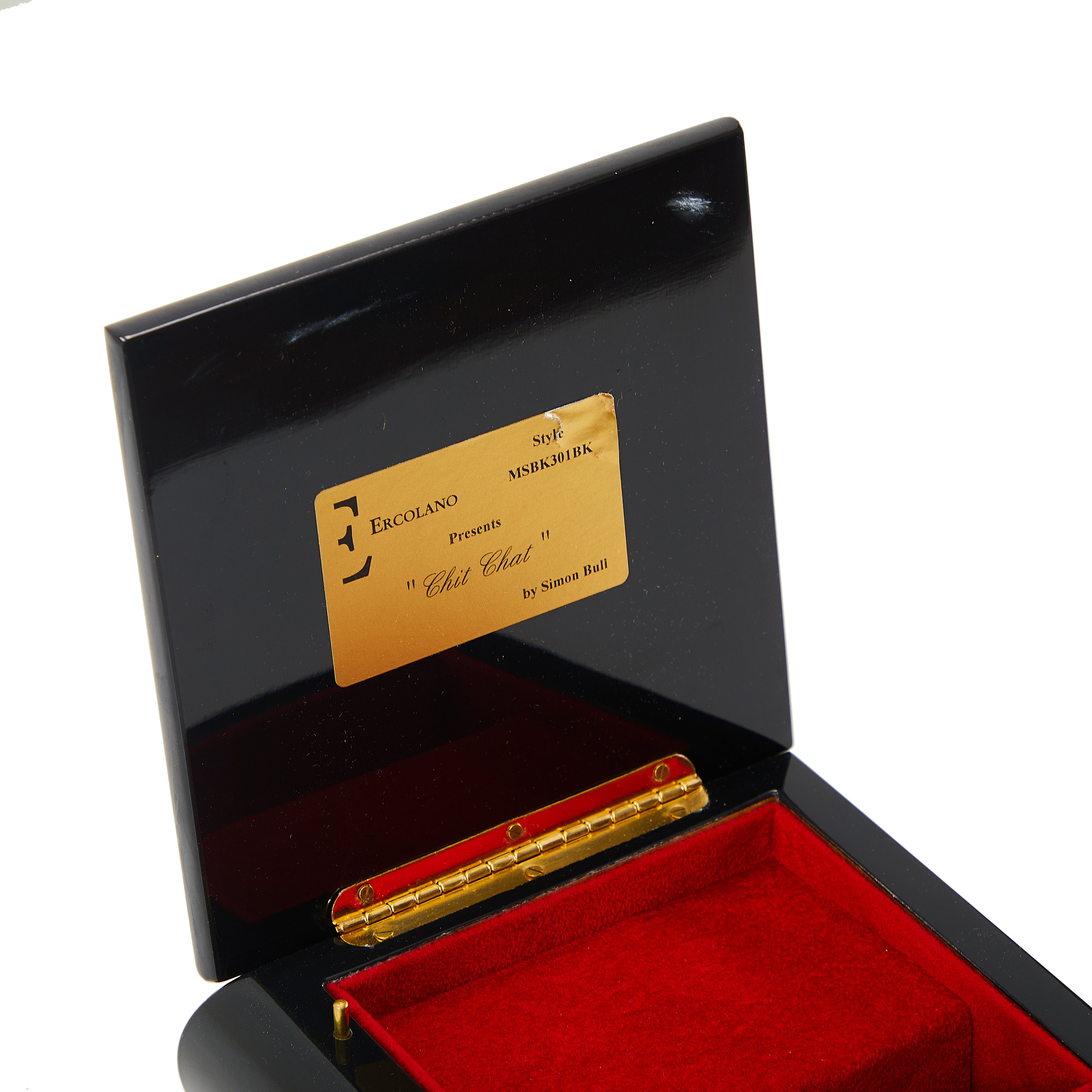 Details: Large black dresser with gold cabinet handles, concentric gold rectangle design on front drawers, glass shelves, and interior light Dimensions: 66" H x 38"...