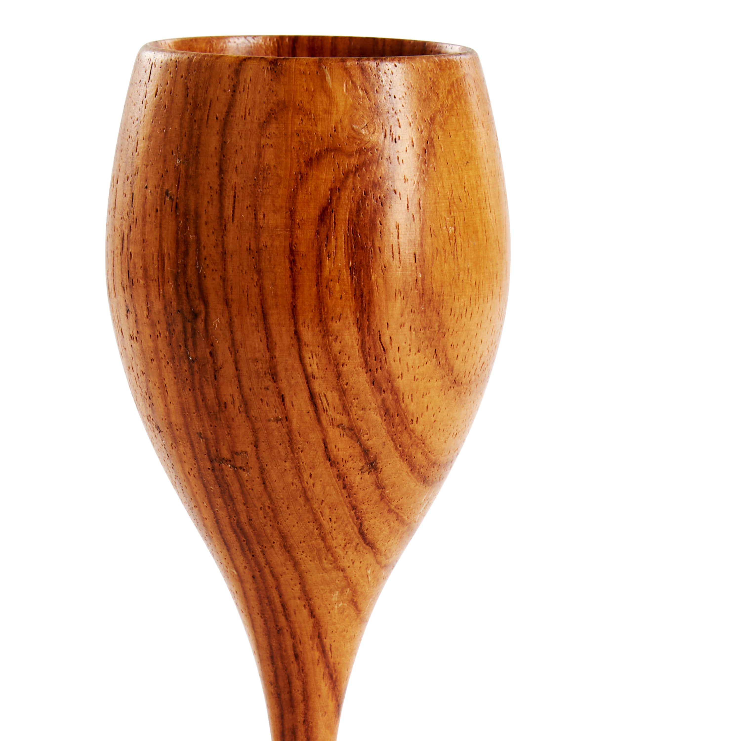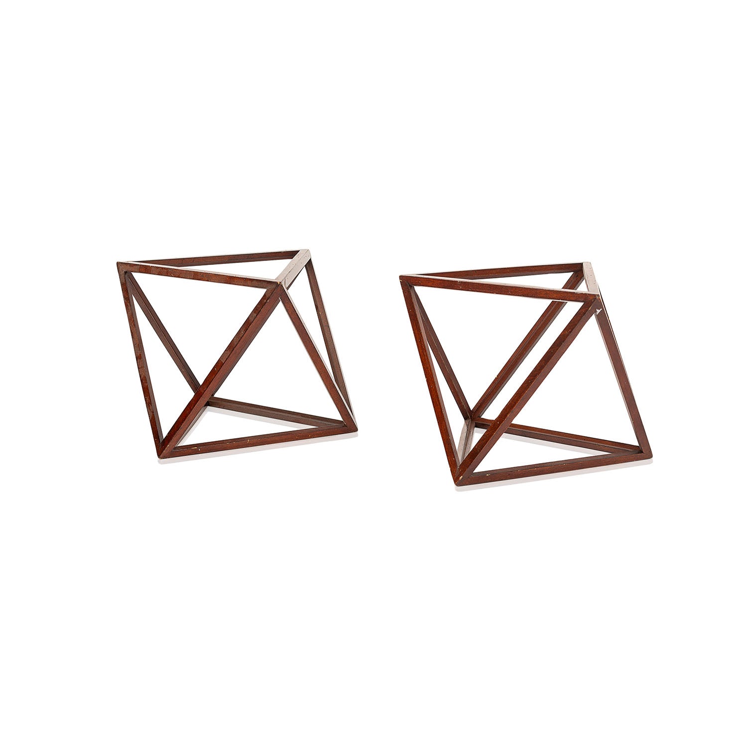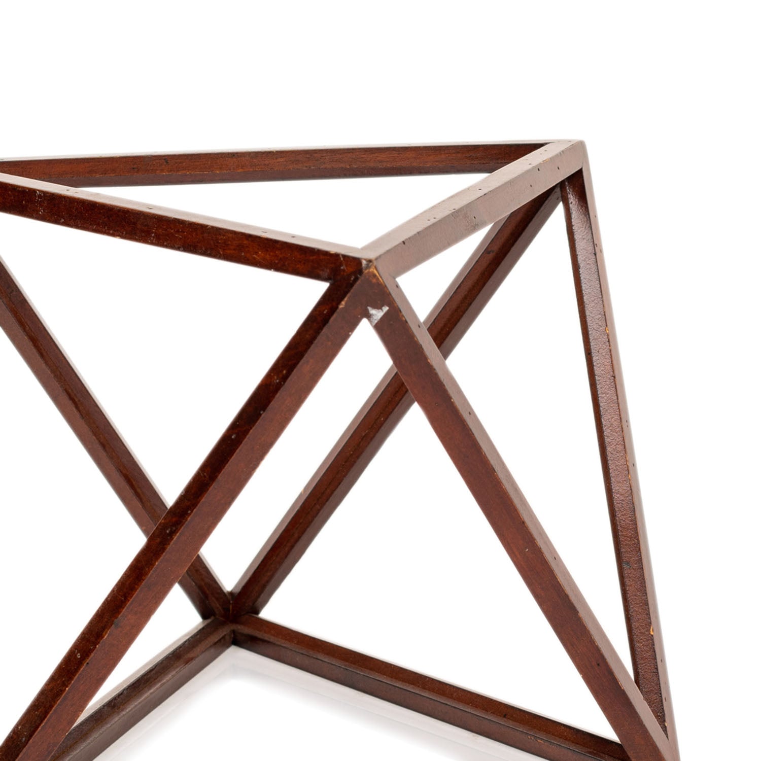 Details: Wood table sculpture featuring a mid-section joined by bronze orbs.