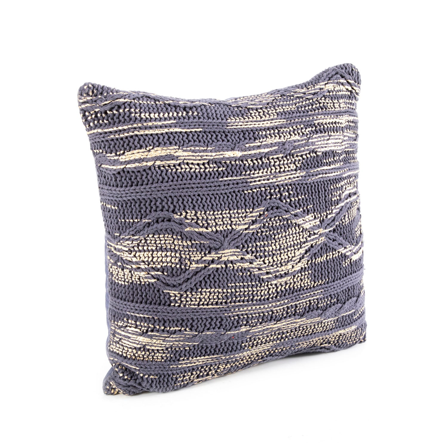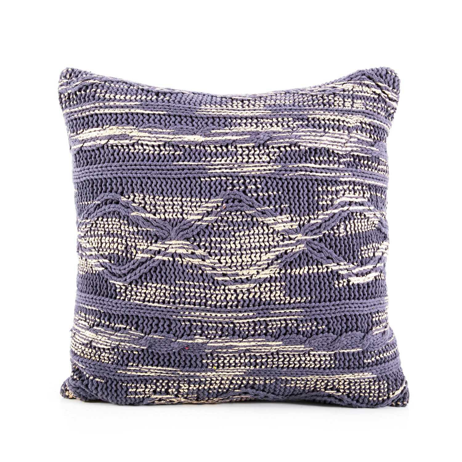 Details: Purple-blue and white braid knit pillow Dimensions: 17" H x 17" W x 6.5" D Quantity: 1