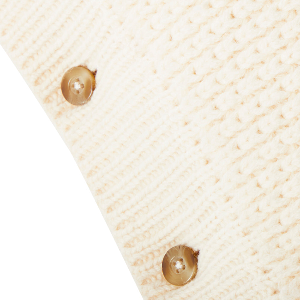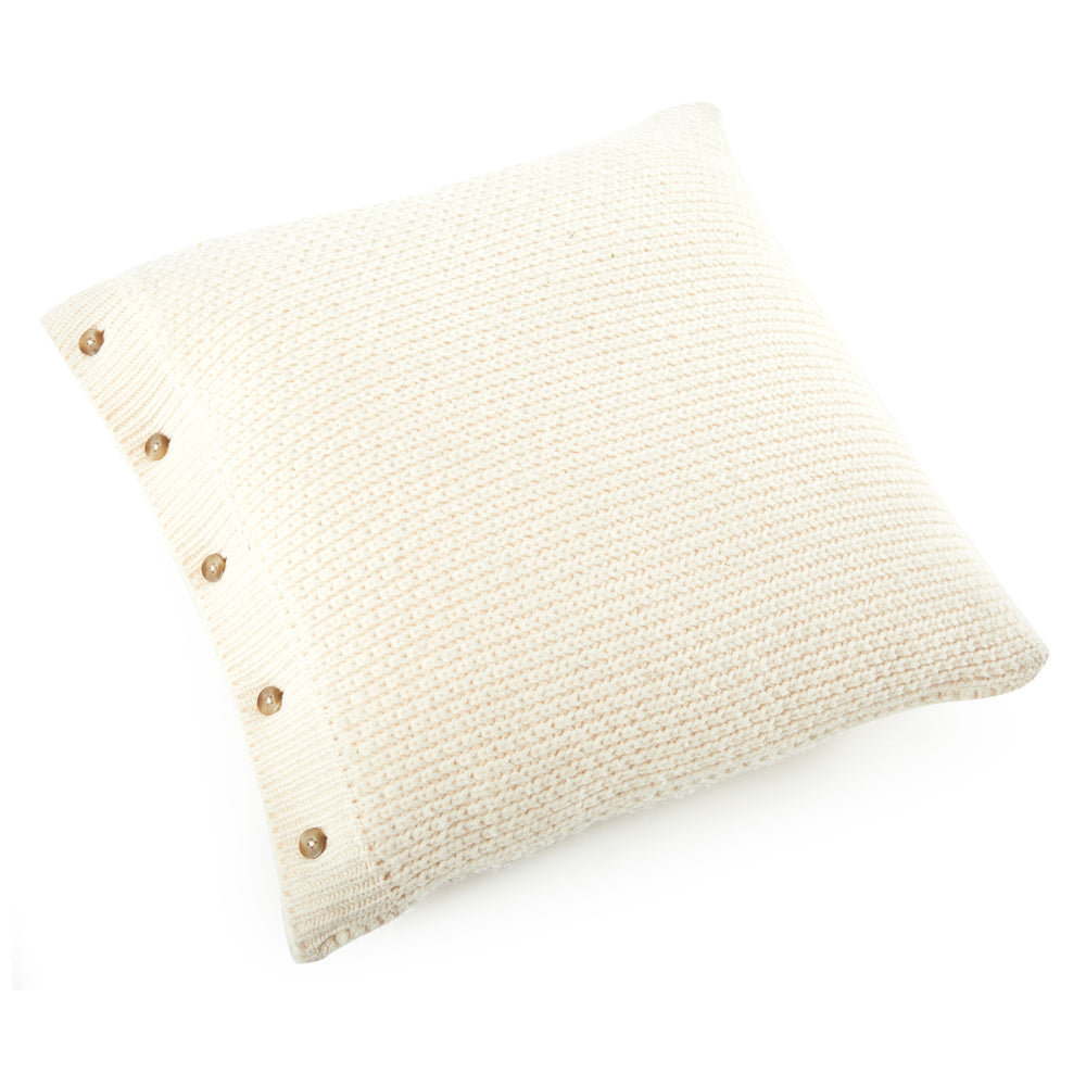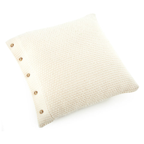 Details: White knit pillow with brown buttons on the side Dimensions: 16.5" W x 16.5" H x 6.5" D Quantity: 1
