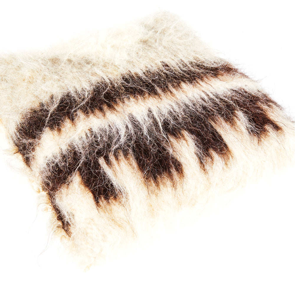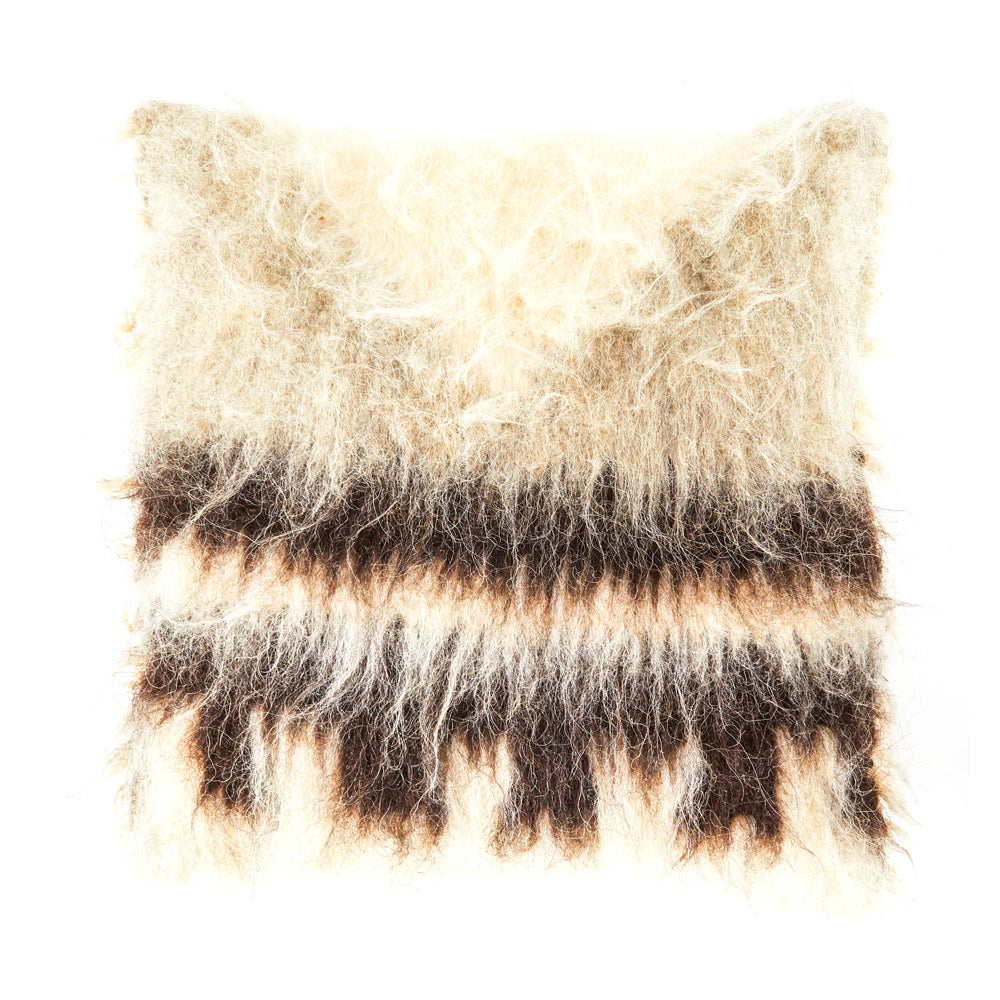 Details: Coarse, shaggy wool pillow with brown stripes Dimensions: 19" H x 19" W x 6" D Quantity: 1