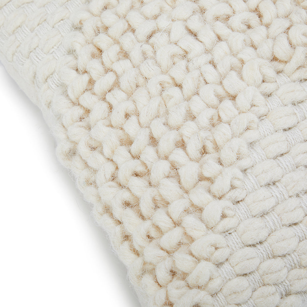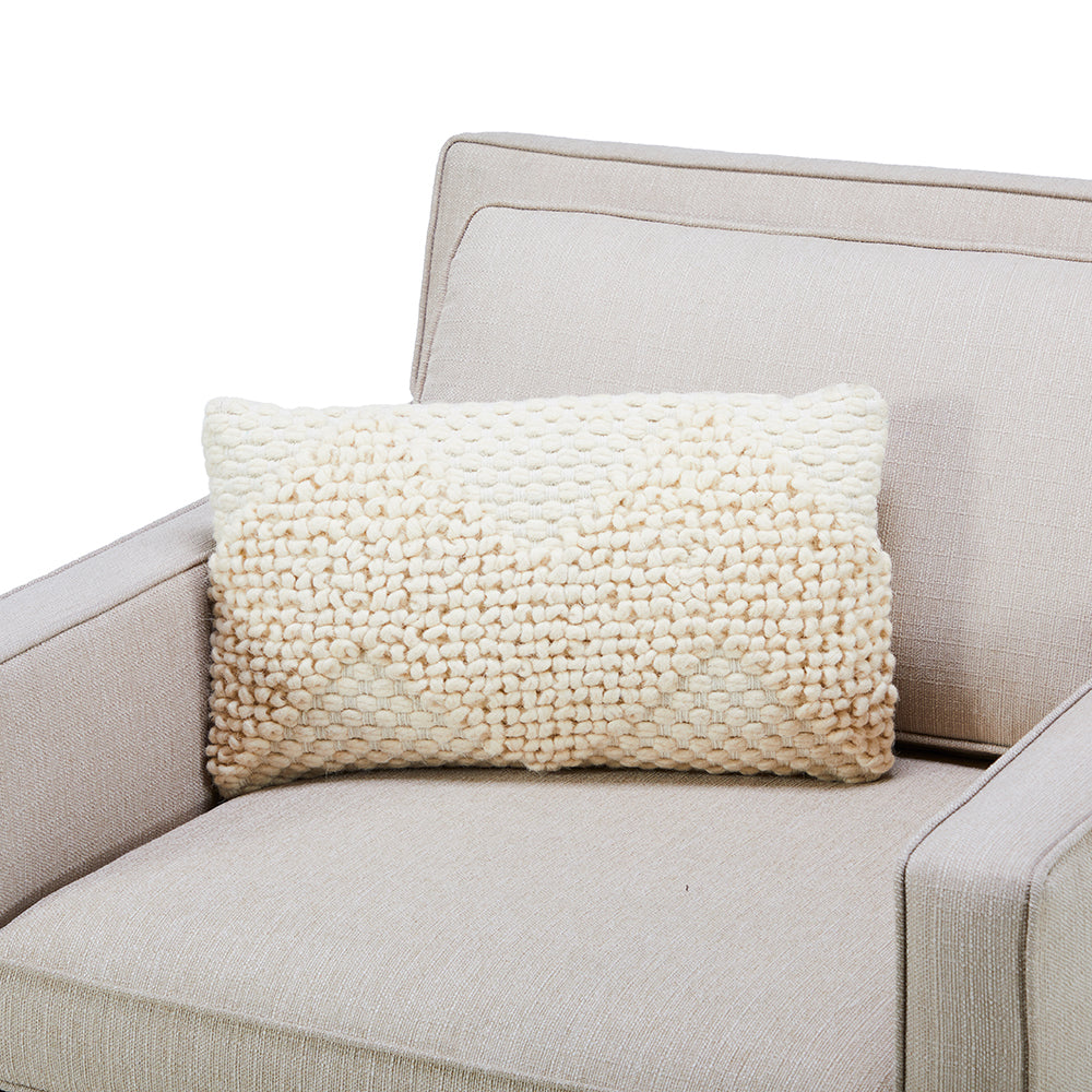 Details: Lumbar pillow with knit wool zig-zag weave pattern Dimensions: 12" H x 19" W x 5.5" D Quantity: 1