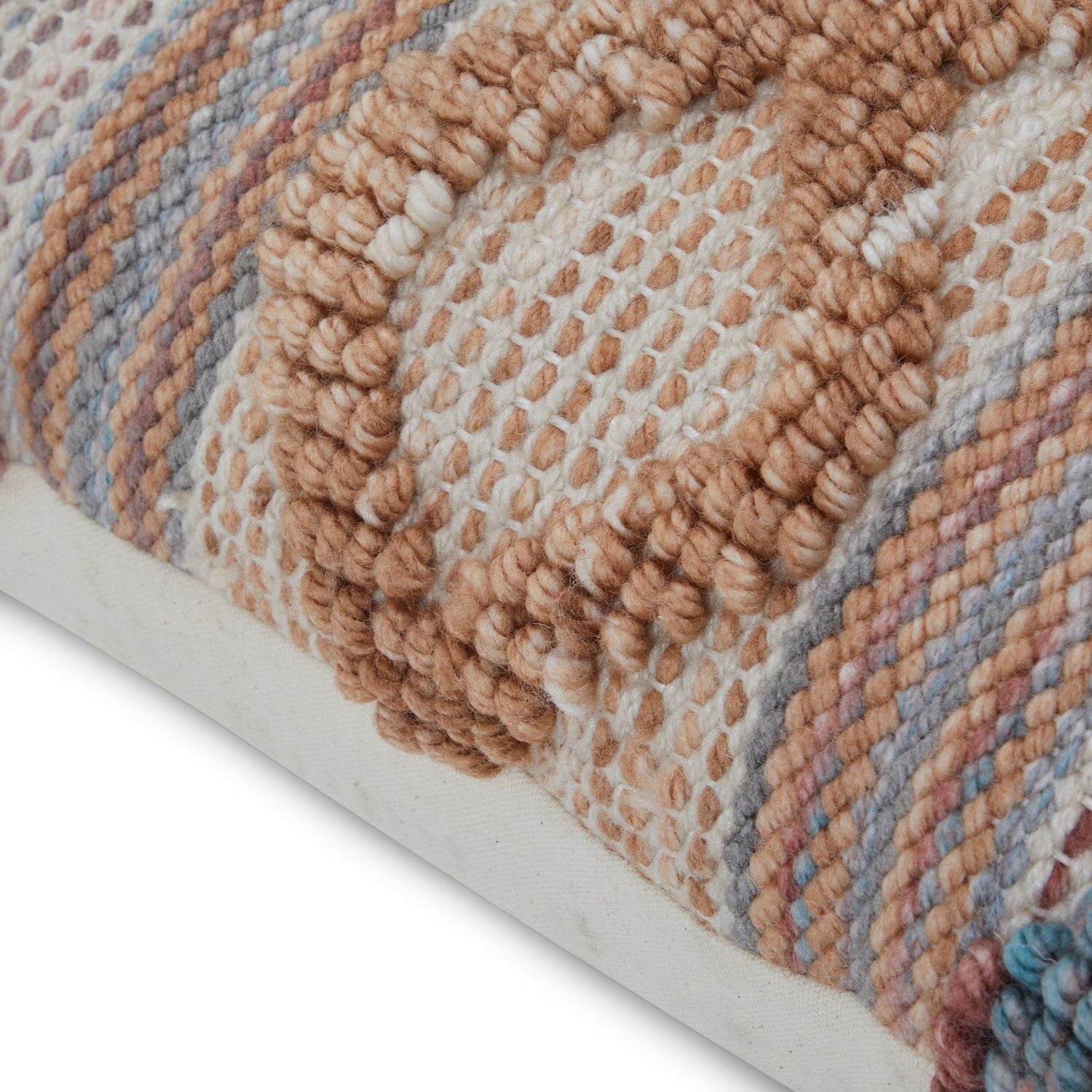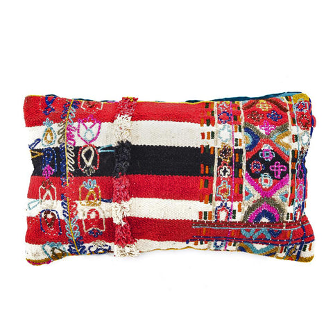 Details: Colorful knit striped and decorated lumbar pillow Dimensions: 10" H x 18" W x 4.5" D Quantity: 1