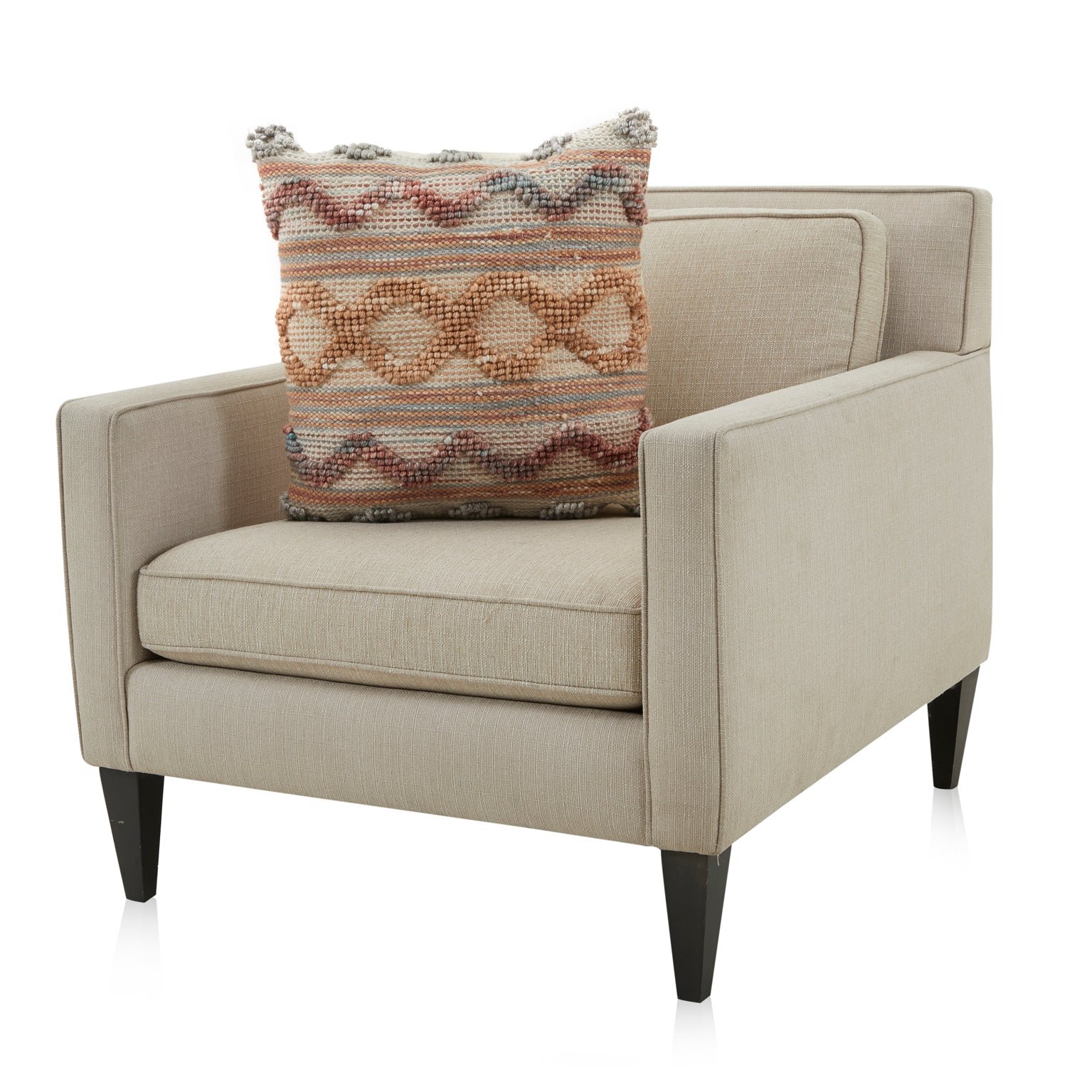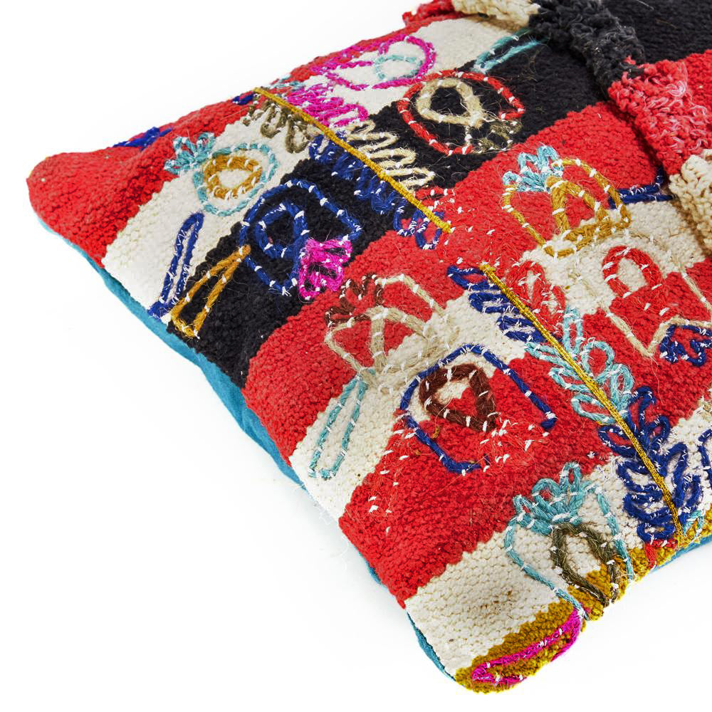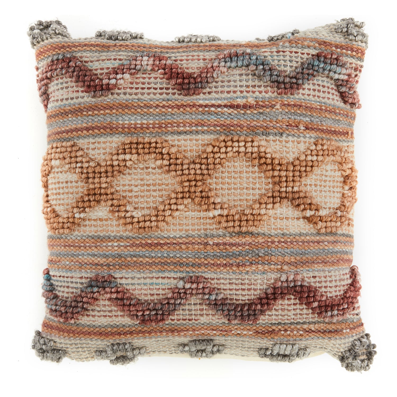 Details: Diamond pattern pillow with red and tan knots Dimensions: 19" H x 19" W x 5" D Quantity: 1
