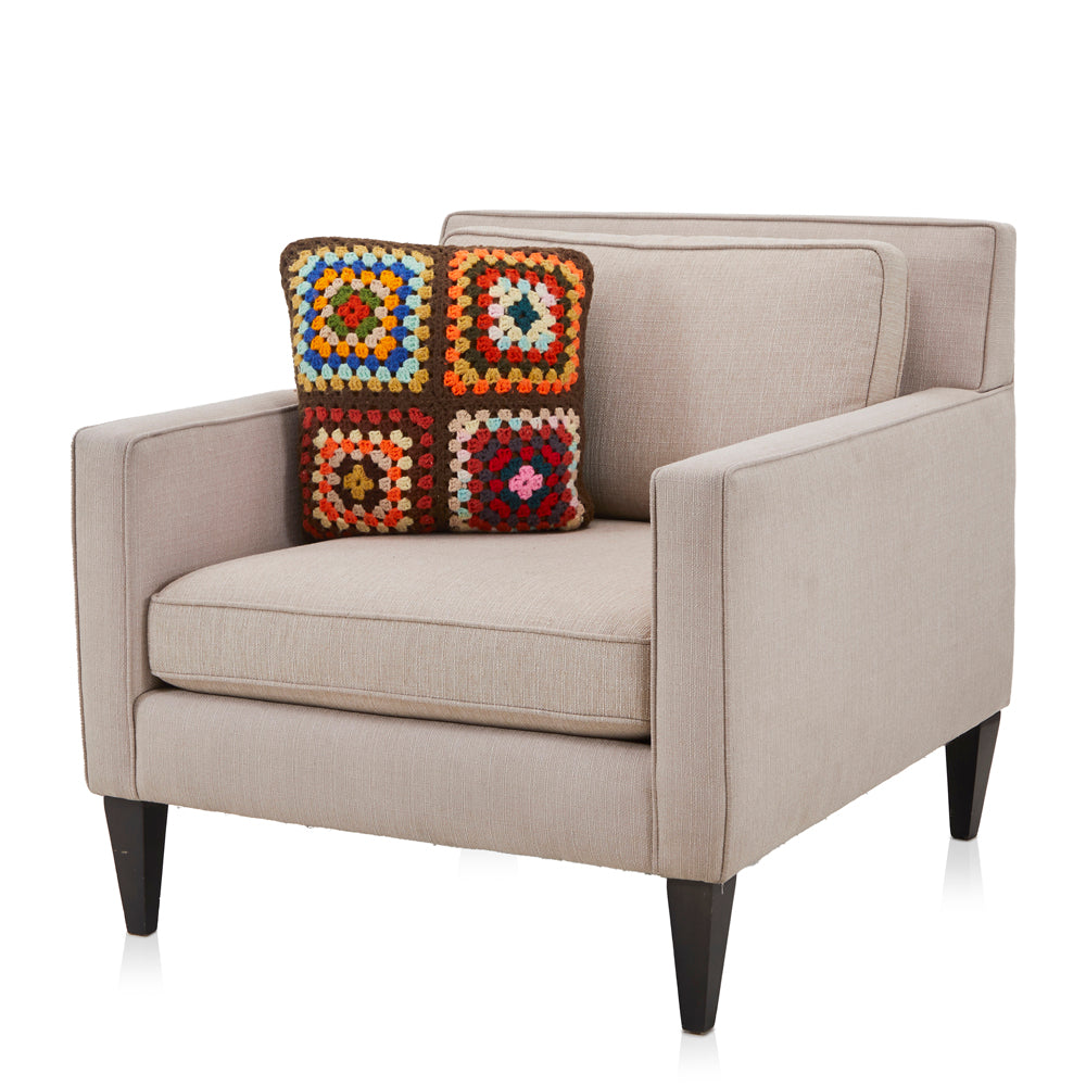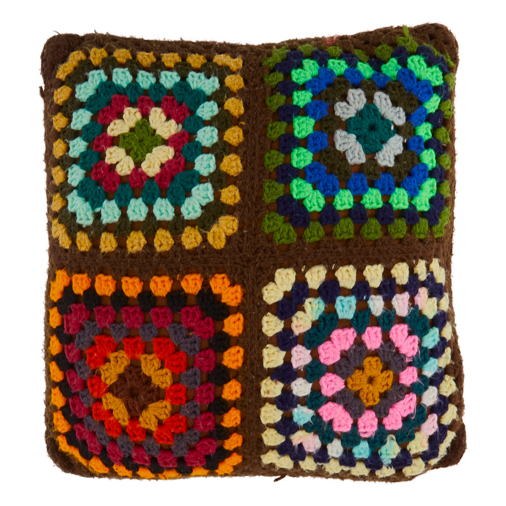 Details: Brown knit pillow with multicolor square design Dimensions: 5.5" H x 6" W x 6" D Quantity: 2