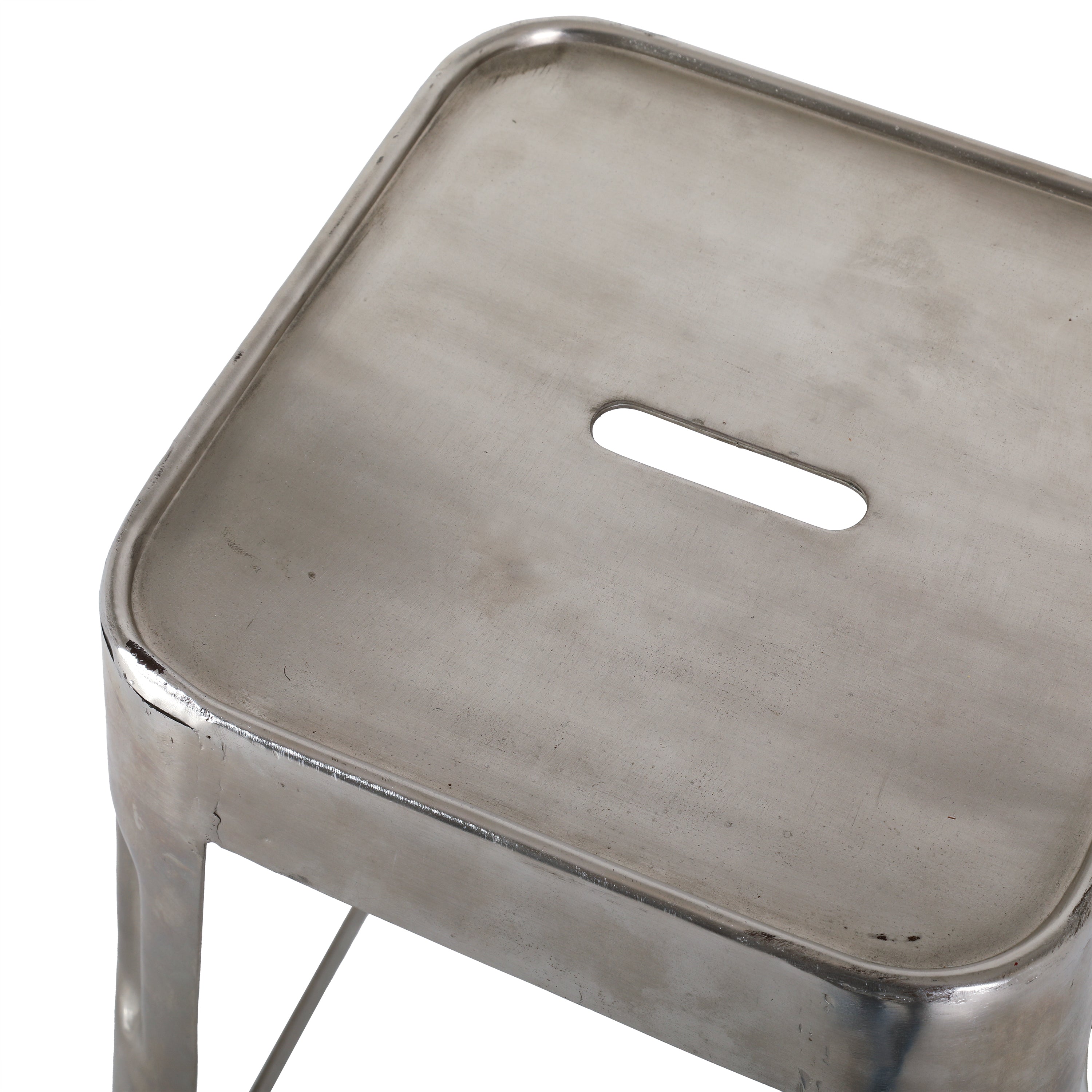 Details: Stackable metal stools with 4 legs and square seat. Dimensions: 27" H x 14.5" W x 14.5" D Quantity: 4