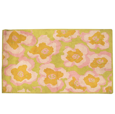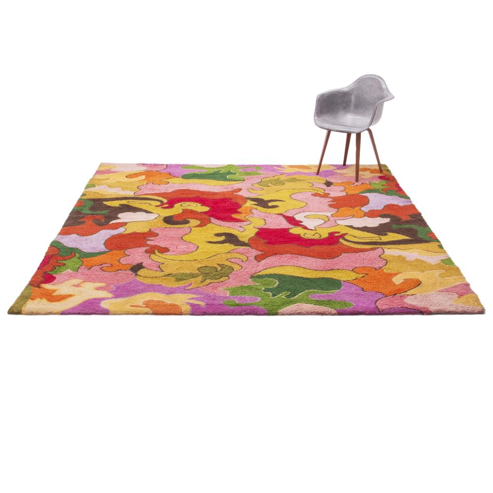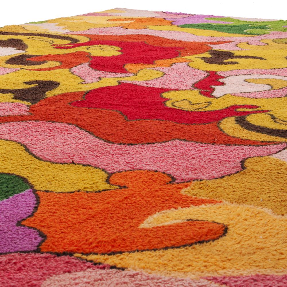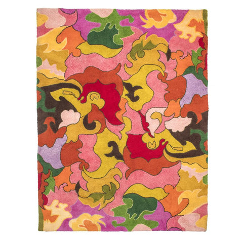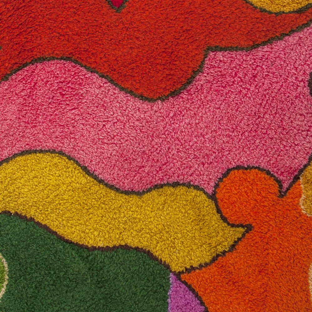 Details: Multicolored psychedelic 1970's floral rug in pink, red, yellow, green, etc. Dimensions: 101" H x 134" W