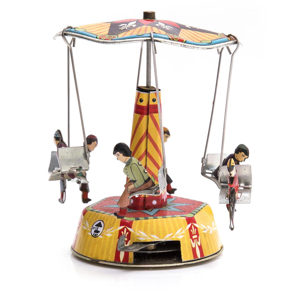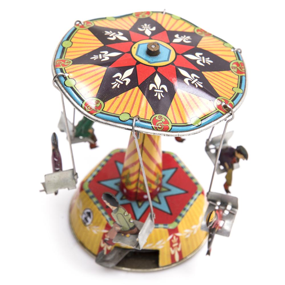 Details: Vintage carousal toy with painted detail. Dimensions: 4"L x 3"W x 3" D