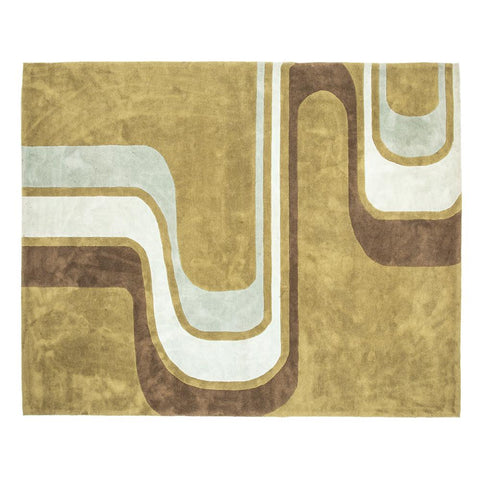NOTE: Vintage condition - moss green, brown, cream, grey-blue, waves Dimensions: 96" W x 120" D Quantity: 1