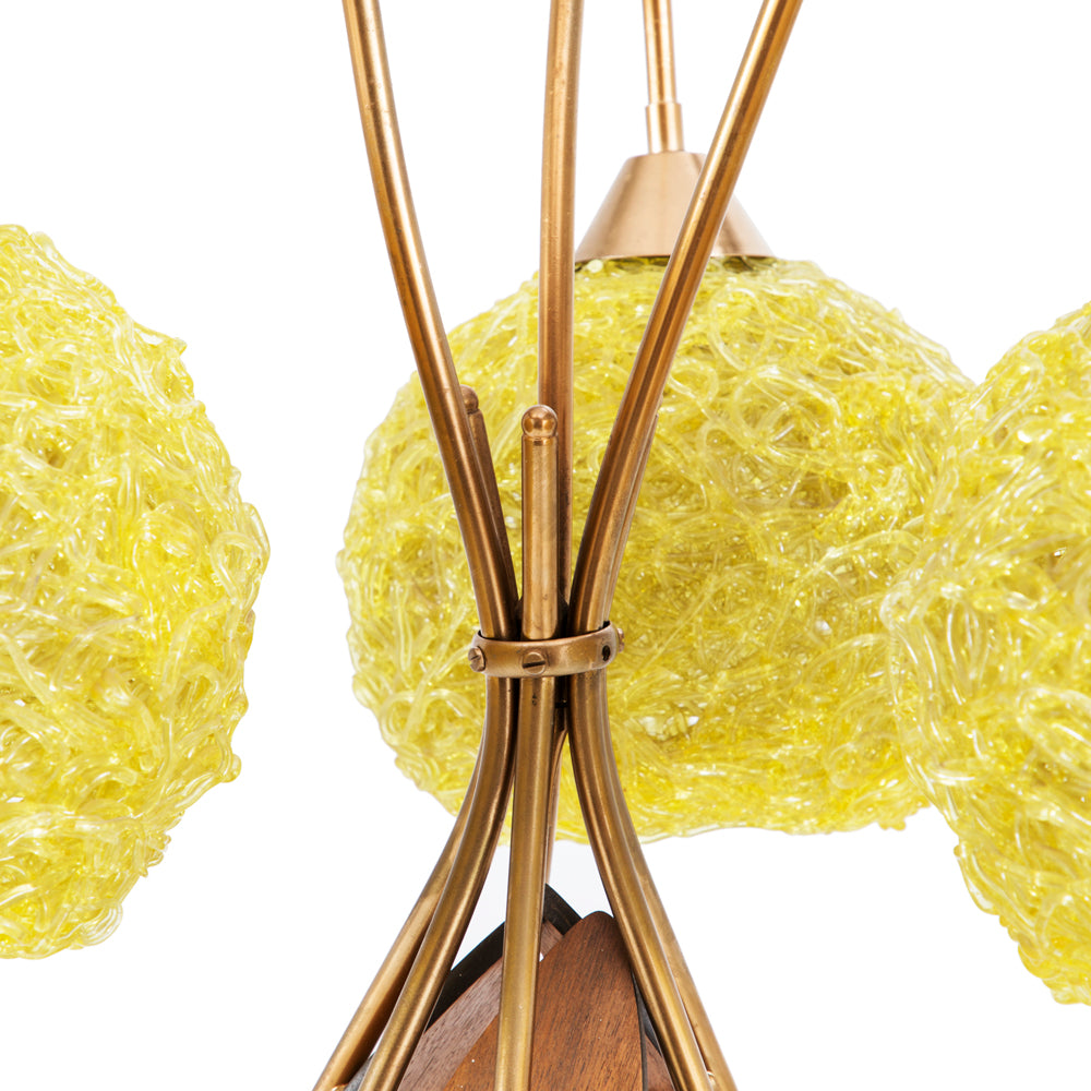 Details: Yellow, Metal, Wire, Looped, Flower, White Inner Cylinder, Hanging, Pendant, Light, Lamp Dimensions: 13" H x 12" W x 12" D