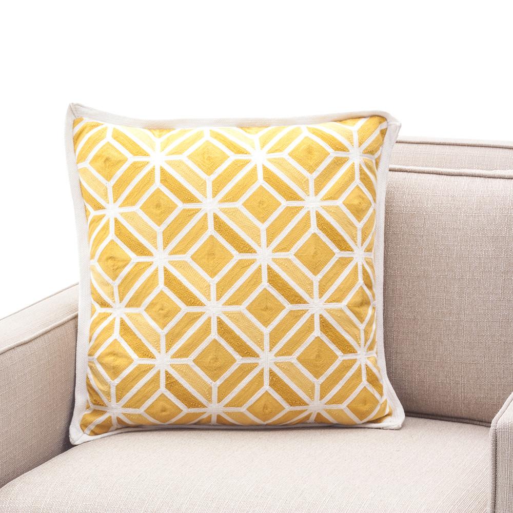 Details: Square pillow with gold and yellow diamond pattern Dimensions: 19" H x 19" W Quantity: 1
