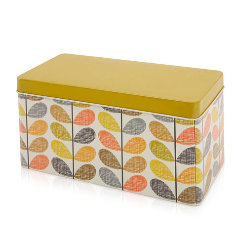 Details: Aluminum tin with graphic floral stem design and yellow lid Dimensions: 5" x 10" x 5" Quantity: 1