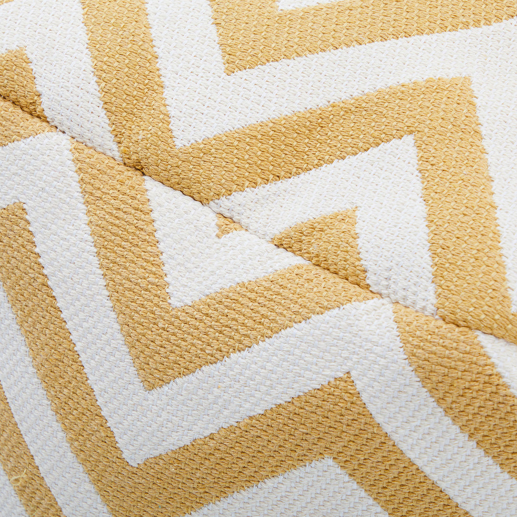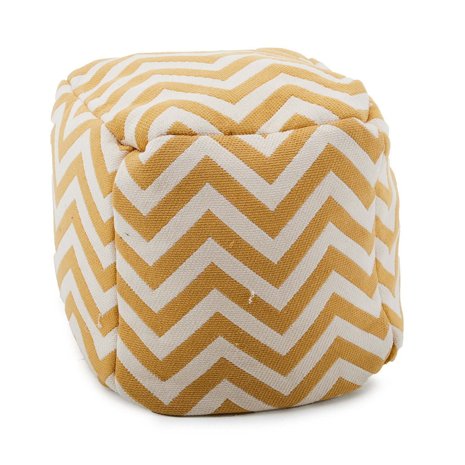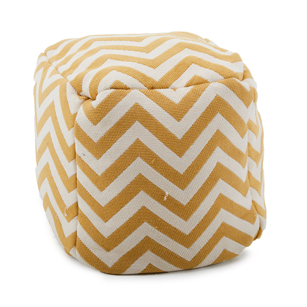 Details: Mustard and white chevron patterned pouf Dimensions: 15" H x 16" W x 16" D Quantity: 1