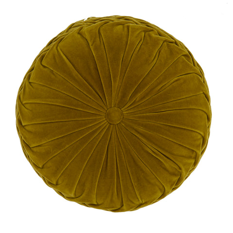 Details: Circular dark avocado green pleated velvet throw pillow with center button Dimensions: 17" H x 17" W x 5" D Quantity: 1