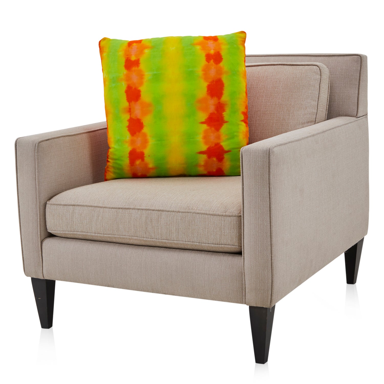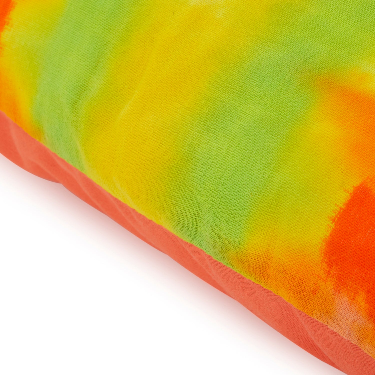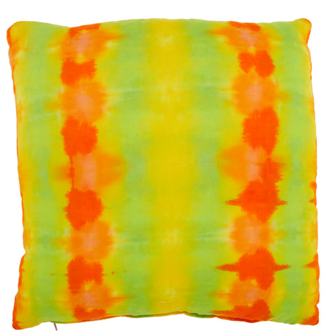 Details: Square Tie-dye pillow in horizontal lines of green, orange and yellow with complete orange backside Dimensions: 19" H x 19" W x 7" D Quantity: 1...