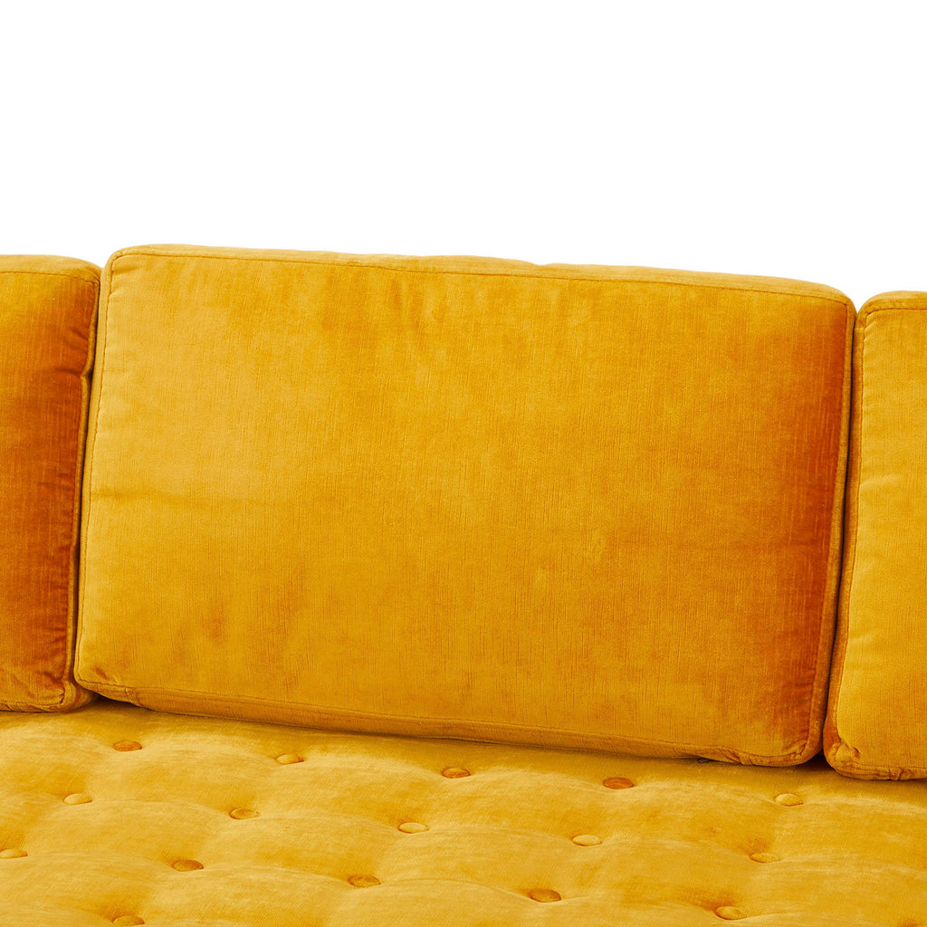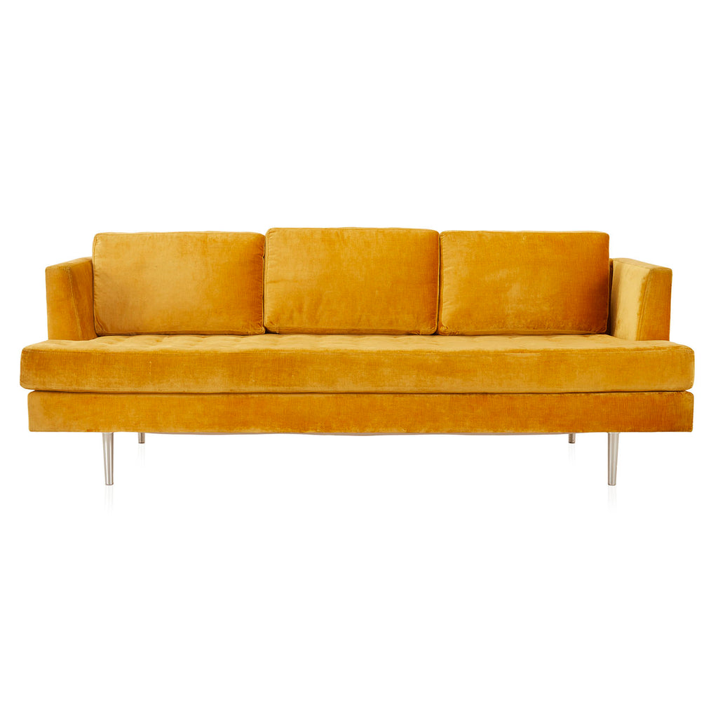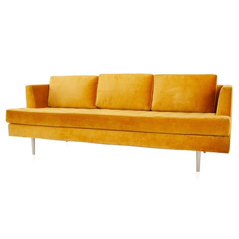 Details: Mid-century vintage yellow sofa Dimensions: 28" H x 84" W x 33" D Quantity: 1