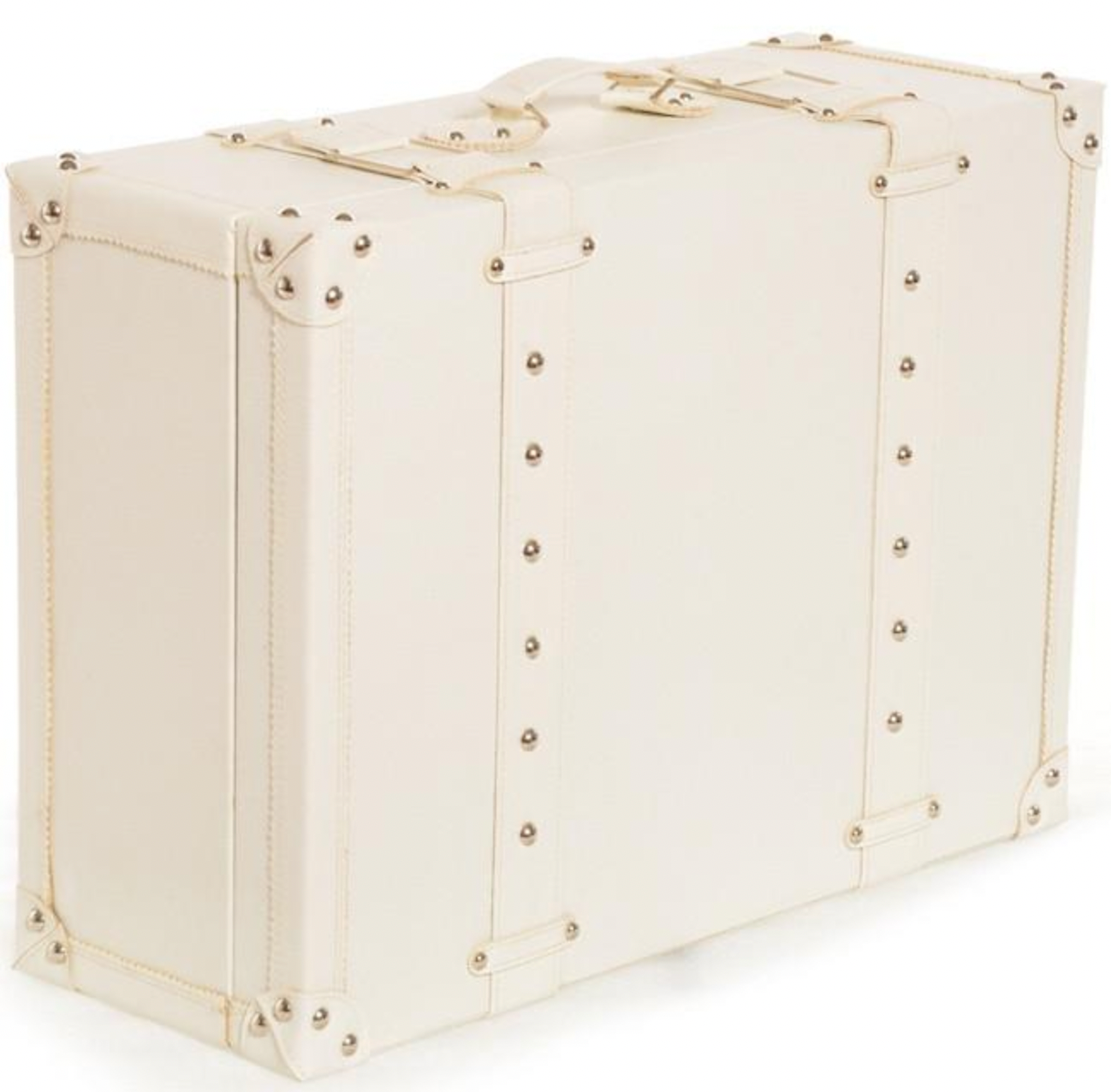 Details: White leather armchair with wide, angled armrests. Part of a matching set (sofa and loveseat rented separately). Dimensions: 31" H x 43" W x...