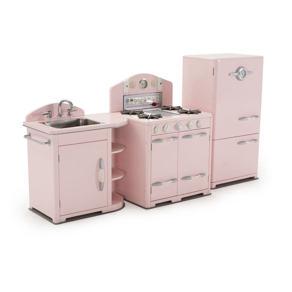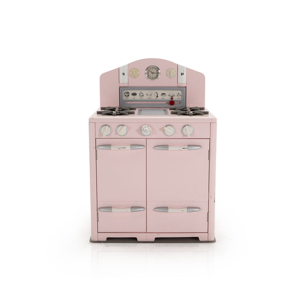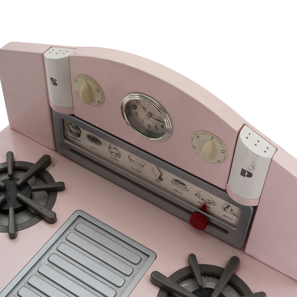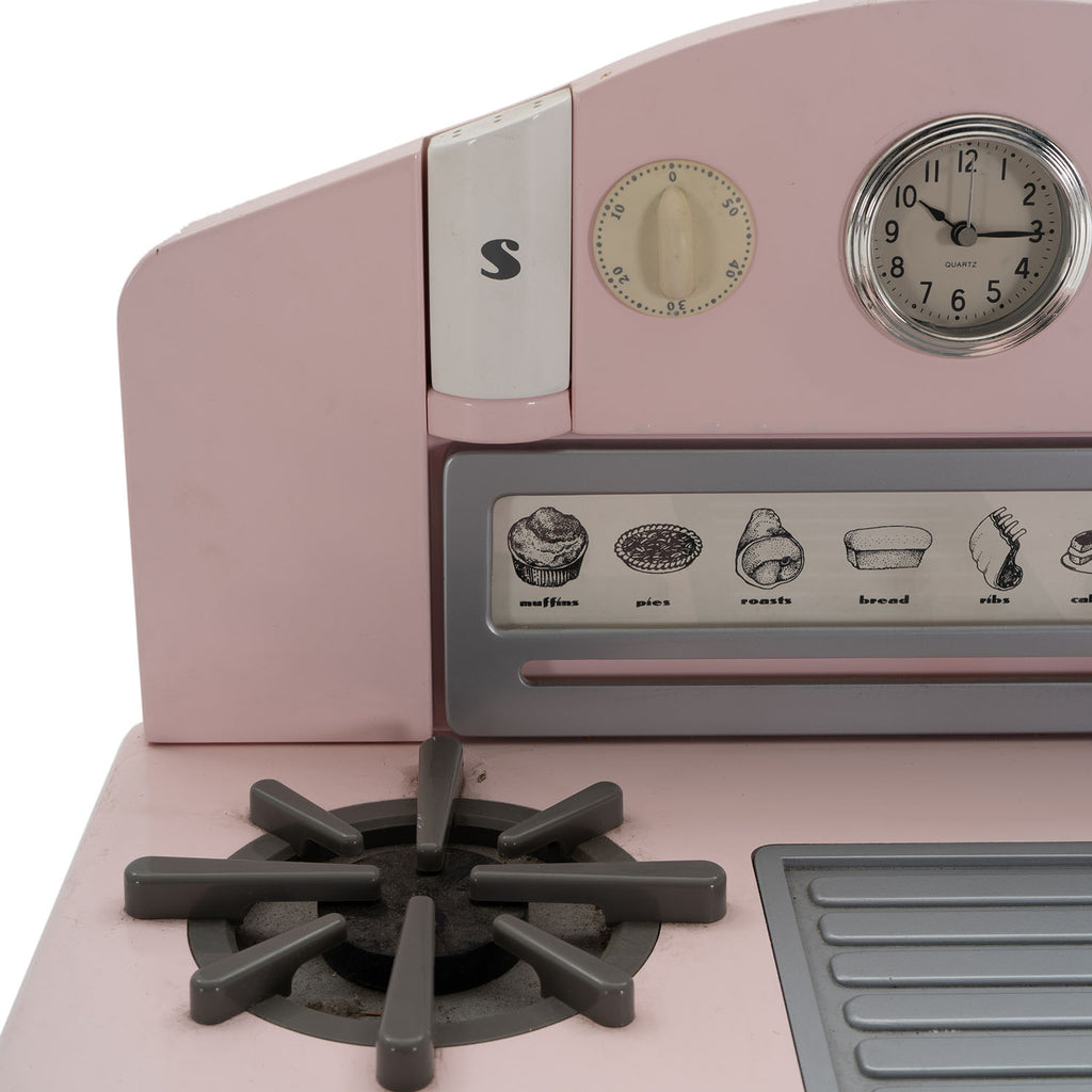 Details: Pastel pink toy oven with four burners, multiple oven doors, and pictogram oven setting slider. Available as a set with sink unit and refrigerator Dimensions: 33"...