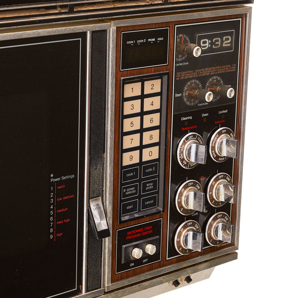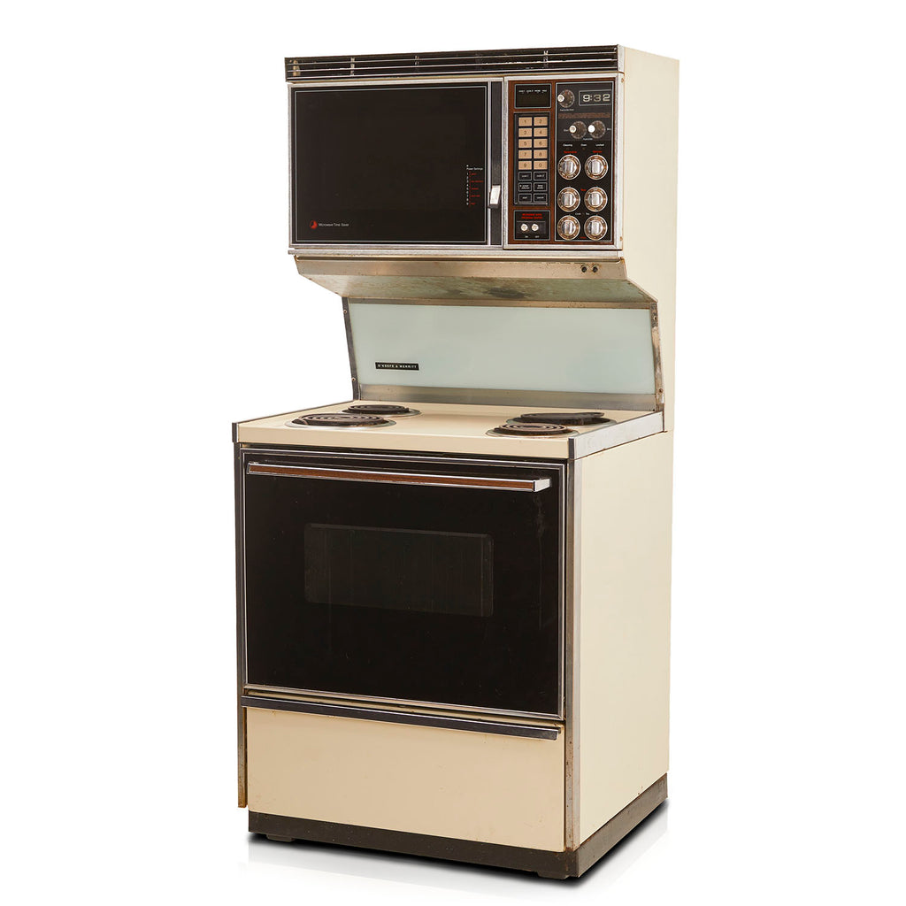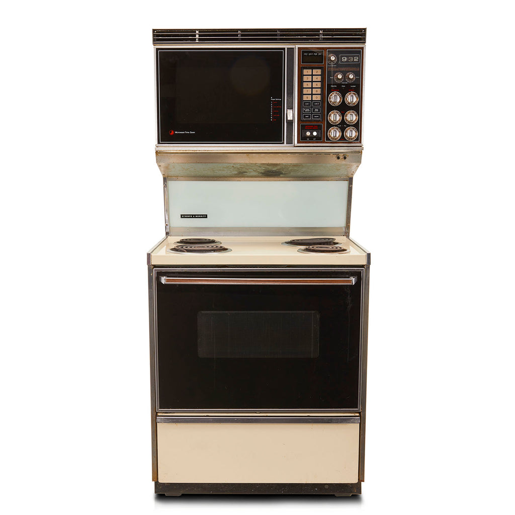 Details: Vintage O'keefe & Merritt single unit - microwave on top of oven with 4-burner range Dimensions: 65" H x 30" W x 25.5" D Quantity: 1
