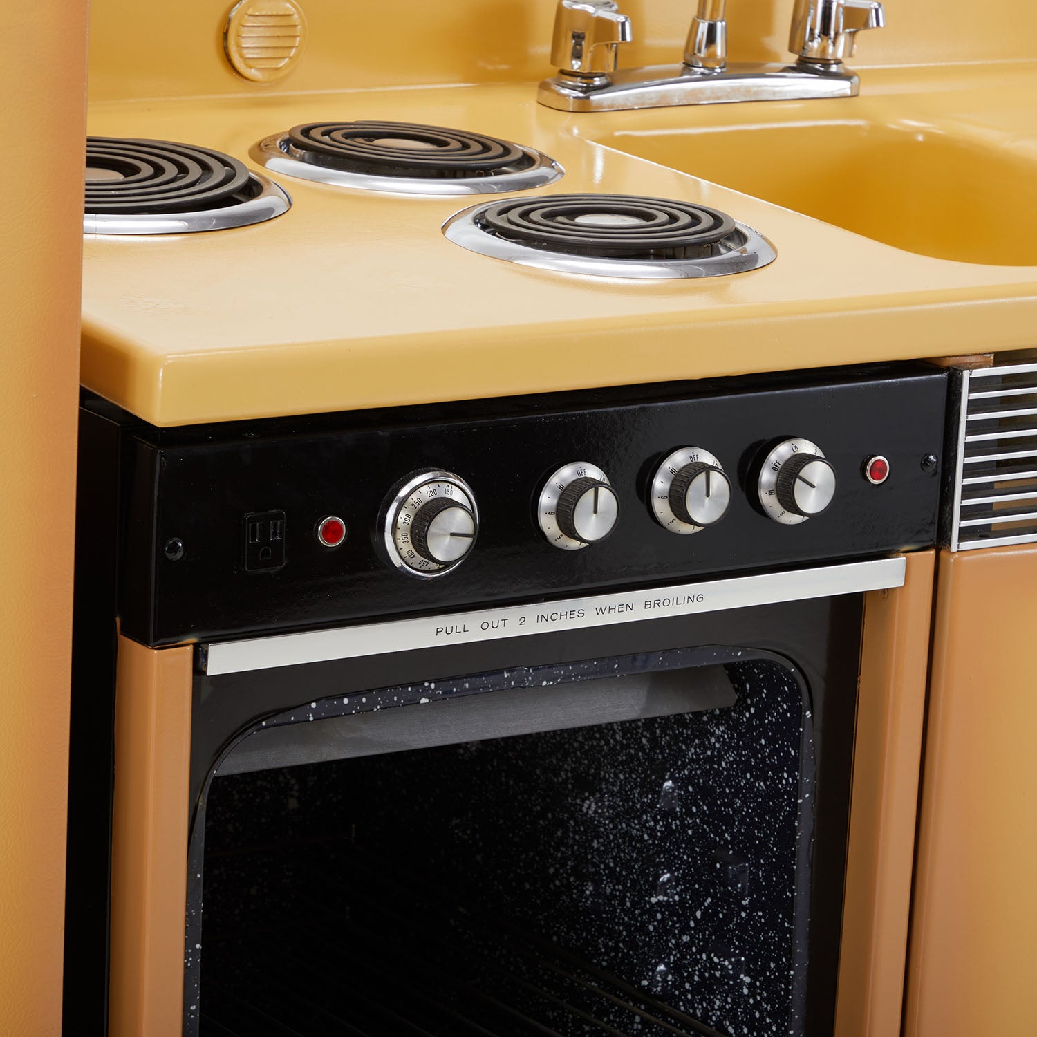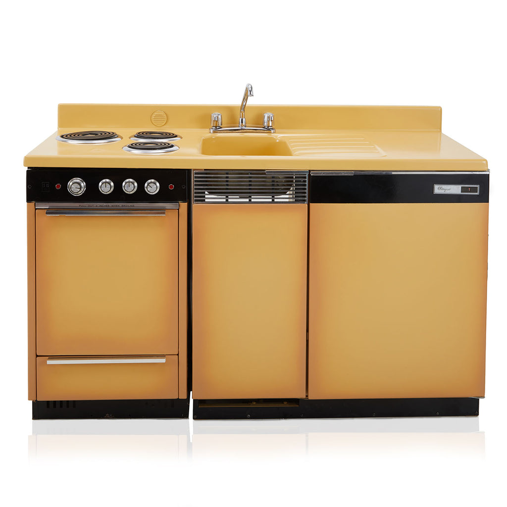 Details: Tan- mustard painted kitchen counter unit with stove, sink, and dishwasher **REFRIGERATOR PICTURED IS LISTED SEPARATELY** Dimensions: Fridge: 64" H x 28" W x...
