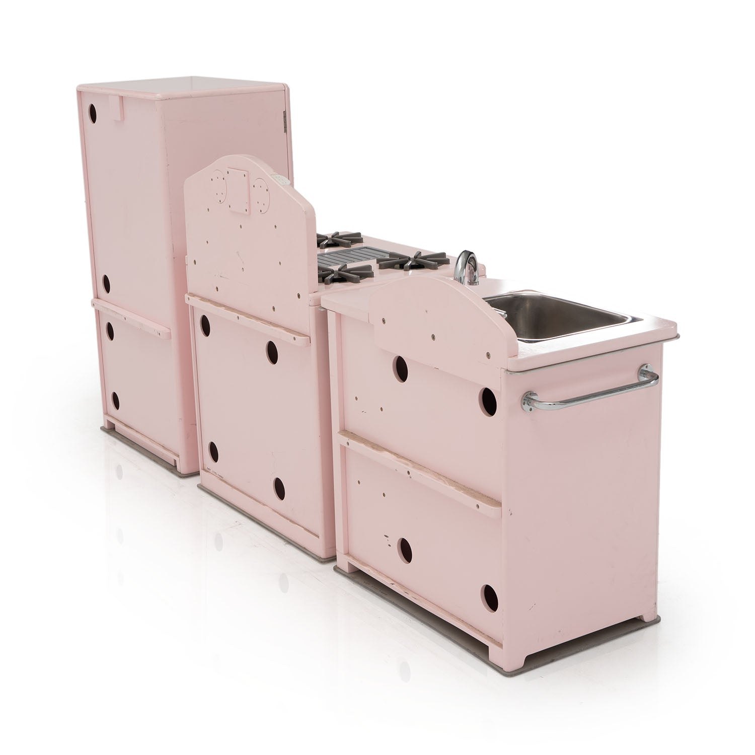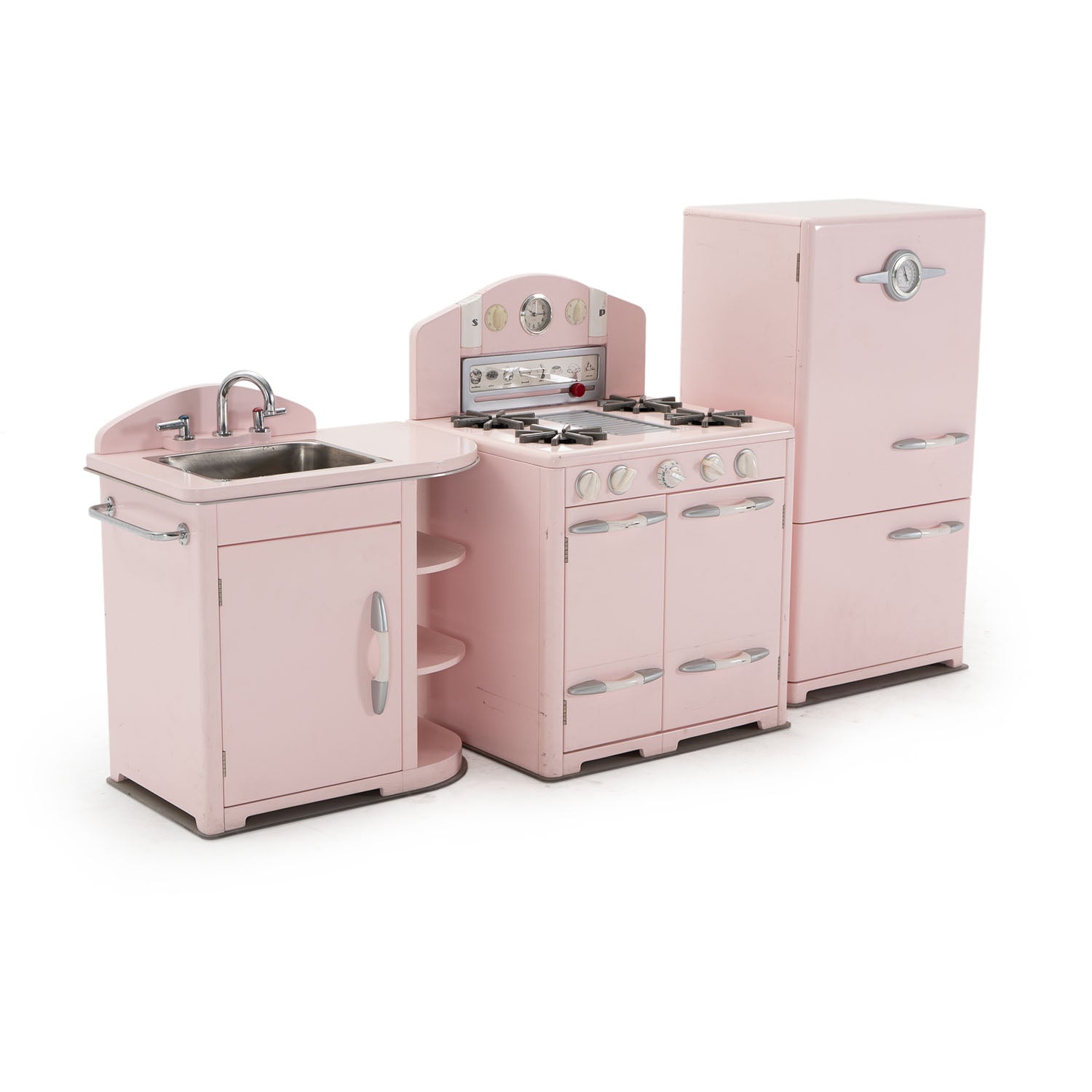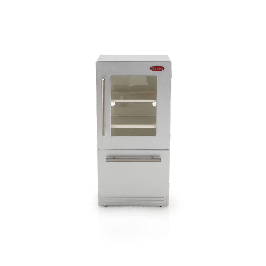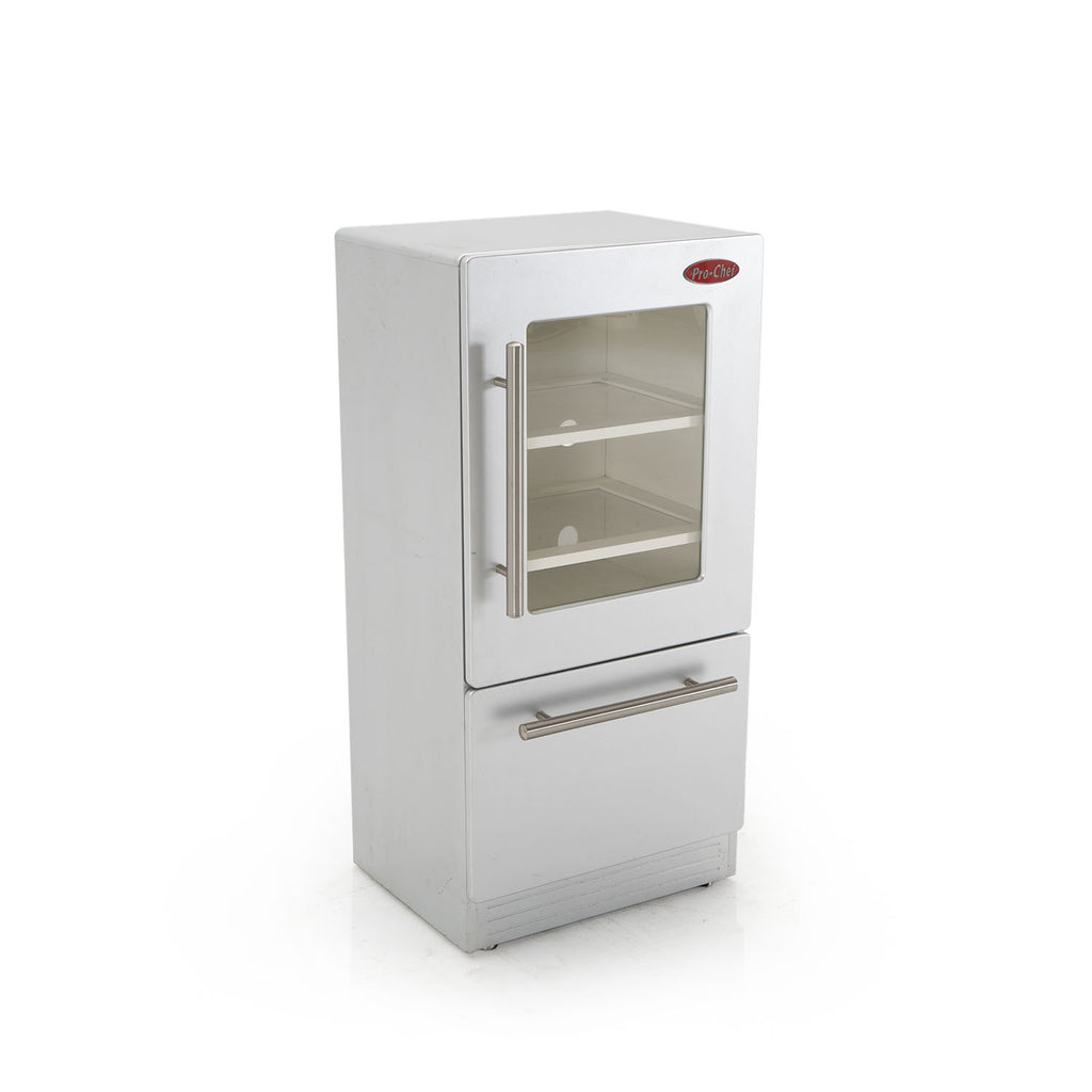 Details: Toy refrigerator with a window, two doors, and red "Pro-Chef" logo. Available as a set with sink unit and oven range Dimensions: 38" H x 18" W...