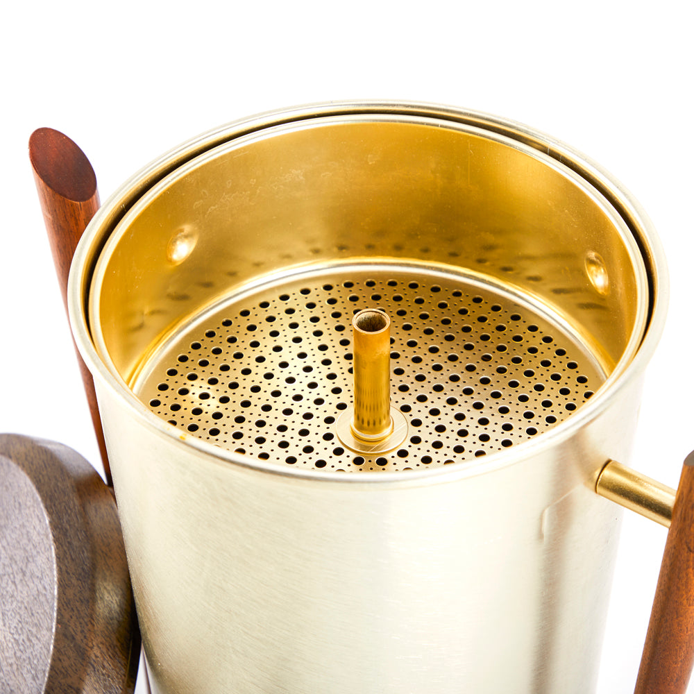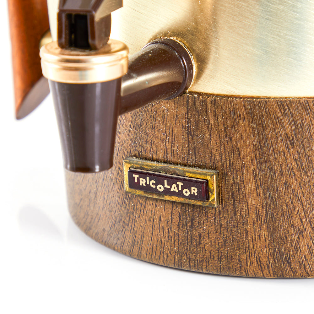 Details: Mid-Century Danish Modern "Tricolator" coffee dispenser Dimensions: 16" H x 12" W x 9" D Quantity: 1