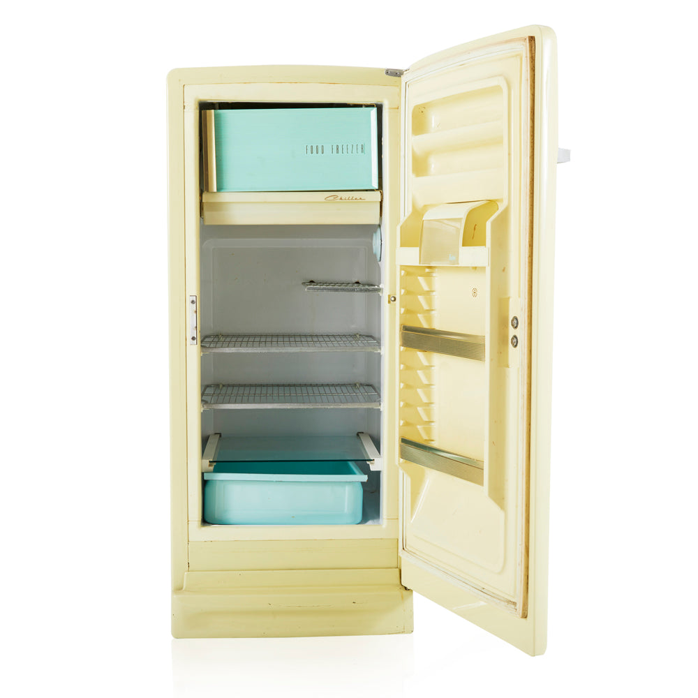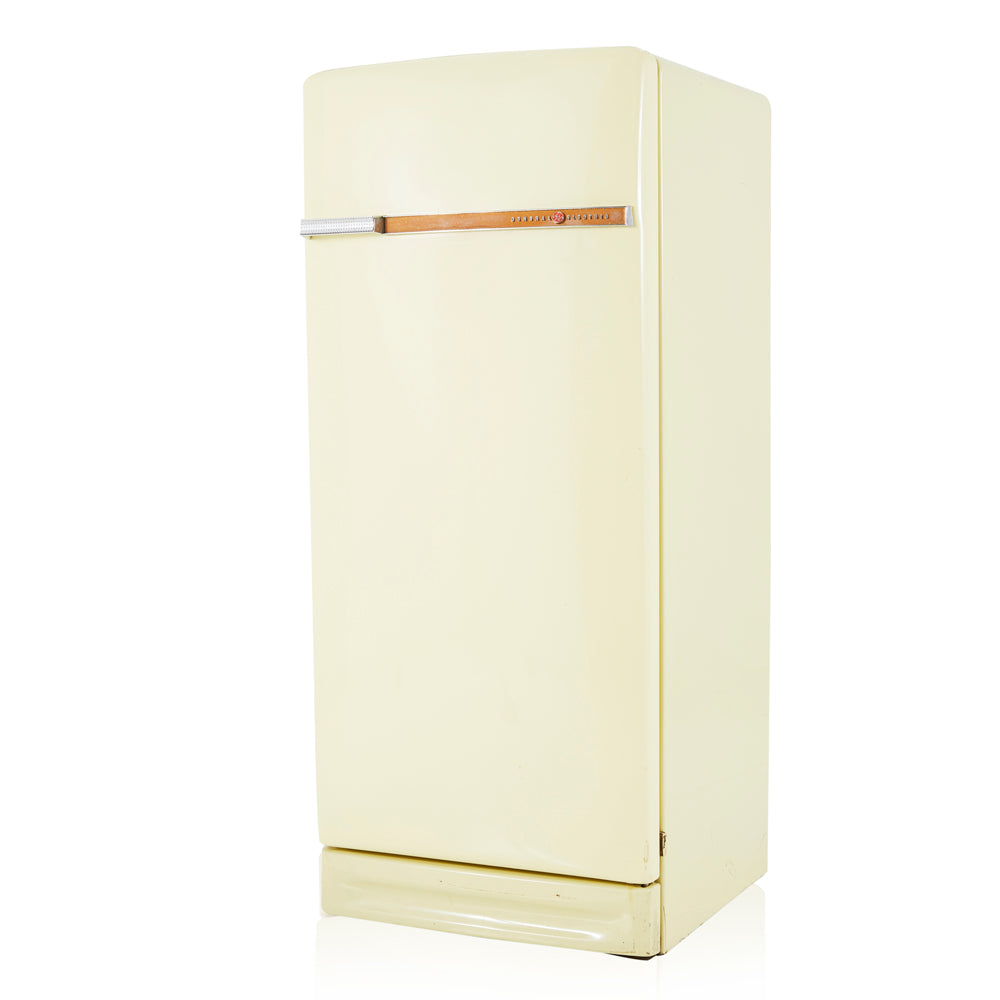 *LOOKS MORE YELLOW THAN CREAM Details: Vintage General Electric refrigerator Dimensions: 55.5" H x 23" W x 26" D Quantity: 1