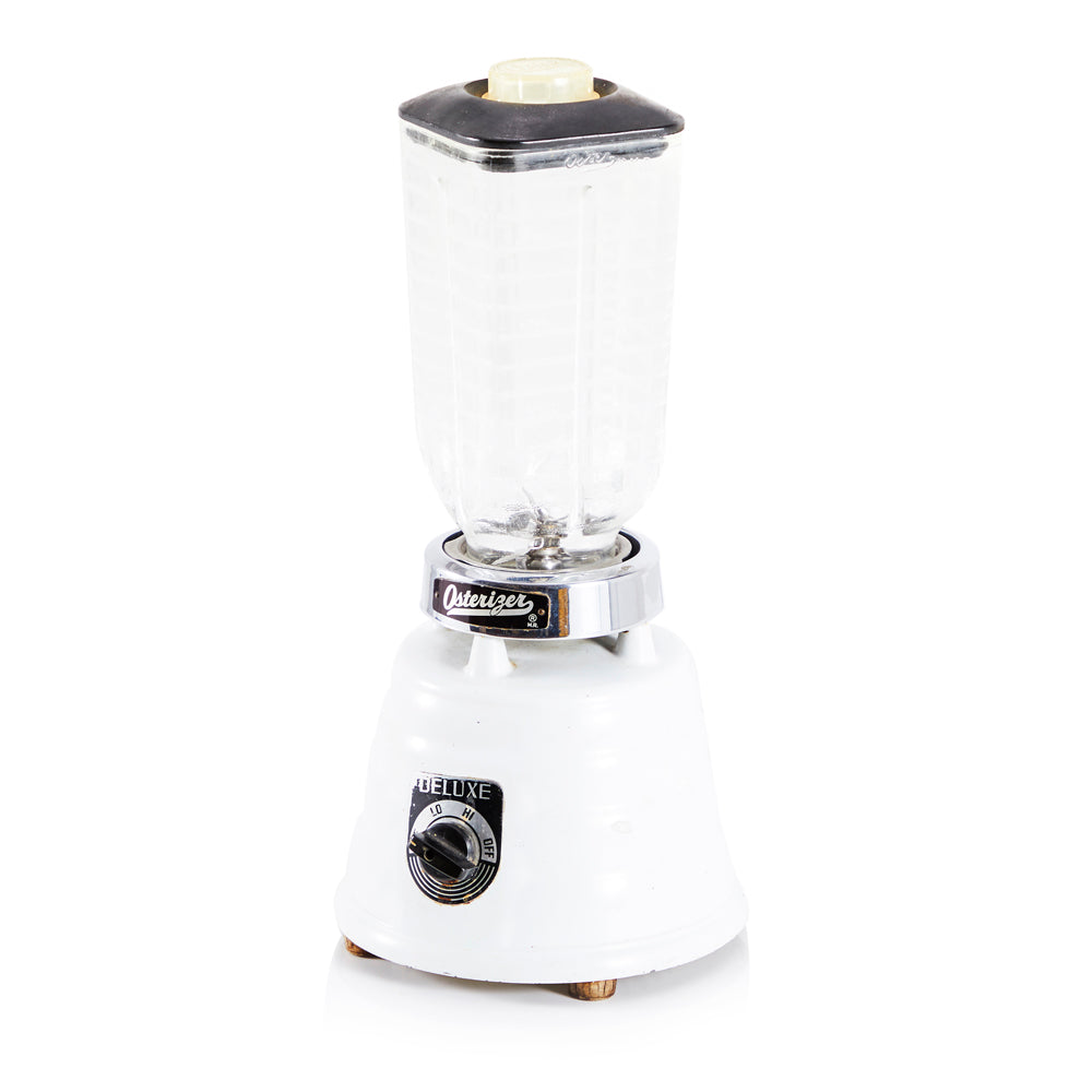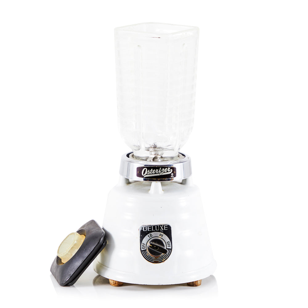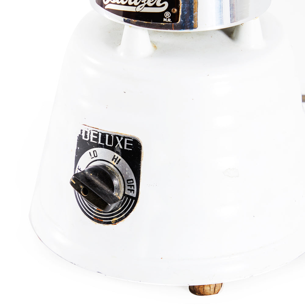 Details: White vintage blender Dimensions: 15" H x 7.5" W x 7.5" D Quantity: 1